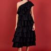 A baby doll mini dress created with textured fabric that features puffy sleeves and a flattering scoop neckline. It’s lined for comfortable all-day wear and has hidden pockets.