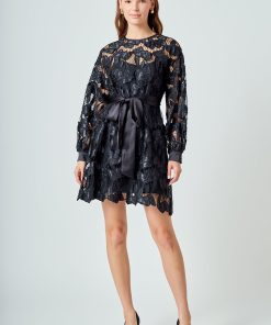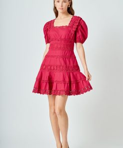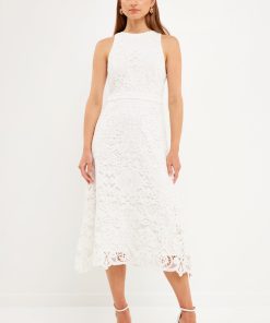 Endless Rose Women’s Dresses Halter Neck Lace Trim Dress | Cream Puff|black|pink|powder Blue|white