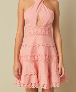 Endless Rose Women’s Dresses Halter Neck Lace Trim Dress | Cream Puff|black|pink|powder Blue|white