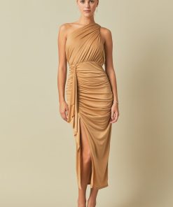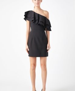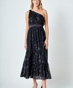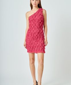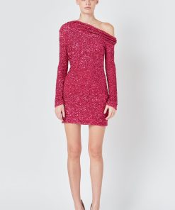 Endless Rose Women’s Dresses Mesh Trimmed One Shoulder Mini Dress | Burgundy|black|dusty Blue