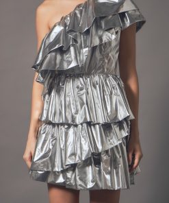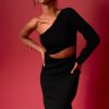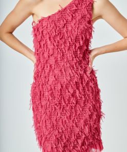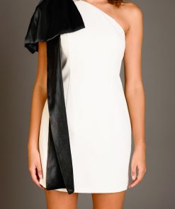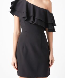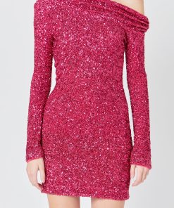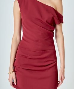 Endless Rose Women’s Dresses Mesh Trimmed One Shoulder Mini Dress | Burgundy|black|dusty Blue
