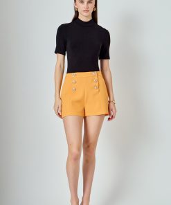 Endless Rose Women’s Gold Color Button Detail Shorts | Orange|taupe|fuchsia|white|navy|black