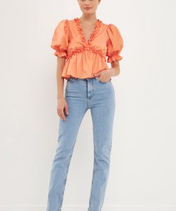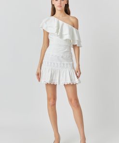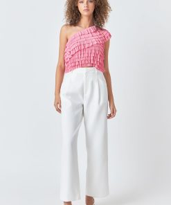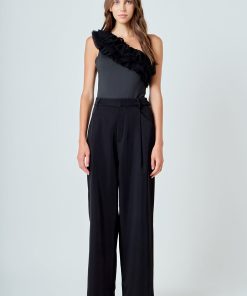 Endless Rose Women’s Ruffled Asymmetrical Bodysuit | Green|orange|black|powder Blue|white|pink