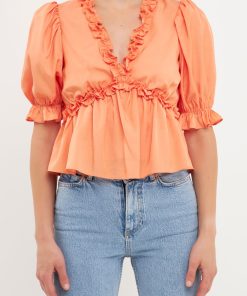 Endless Rose Women’s Ruffled Asymmetrical Bodysuit | Green|orange|black|powder Blue|white|pink