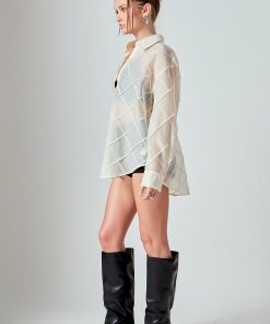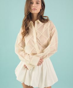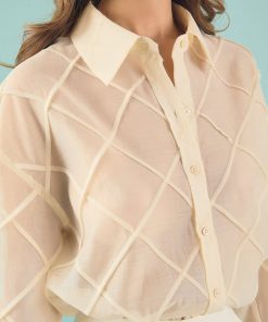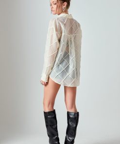 Introducing the newest addition to our shirts and blouses collection, the Alix Textured Checked Organza Long Sleeve Shirt. With its oversized fit, this piece offers a relaxed, yet still effortlessly chic look. The long sleeves and dropped shoulders bring a touch of comfortability and casualness, while the classic collar adds a refined finish. Crafted from high-quality textured organza, this lightweight, breathable shirt can be styled as a bathing suit coverup or for a chic office look. Don’t miss out on this versatile, stylish essential.