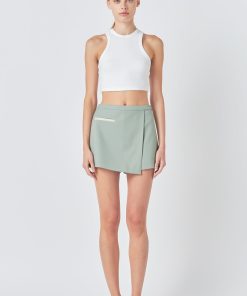 Endless Rose Women’s Asymmetrical Wrap Mini Skort | Sage|taupe