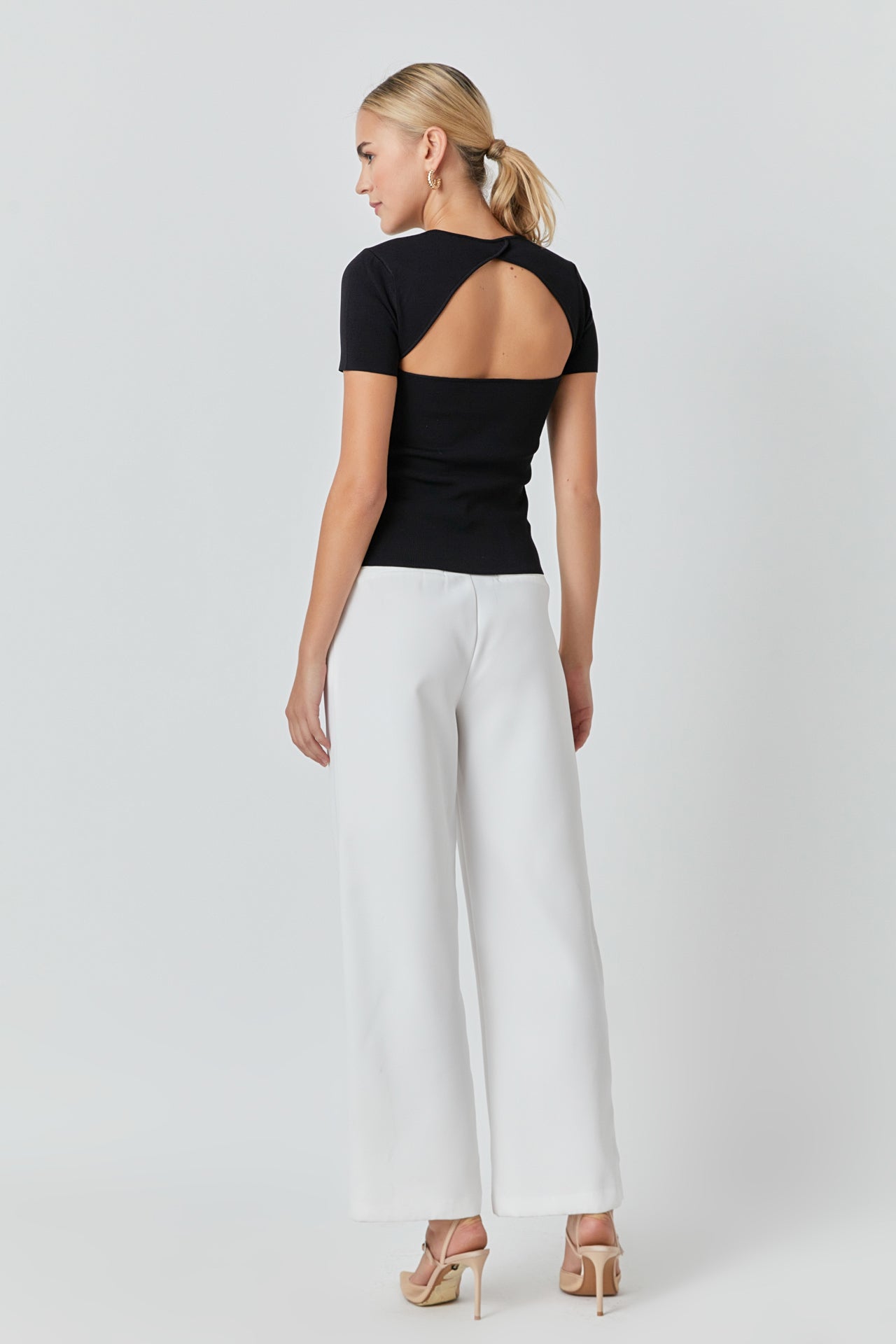 Introducing our new Back Cut-out Detail Knit Top. This top is perfect for any occasion, whether you’re headed to the office or out for drinks with friends. The back cut-out detail adds a touch of sass, while the round neckline and short sleeves keep it classy. The knit top is comfortable and breathable, making it perfect for any season. Add this top to your wardrobe and be ready for anything.