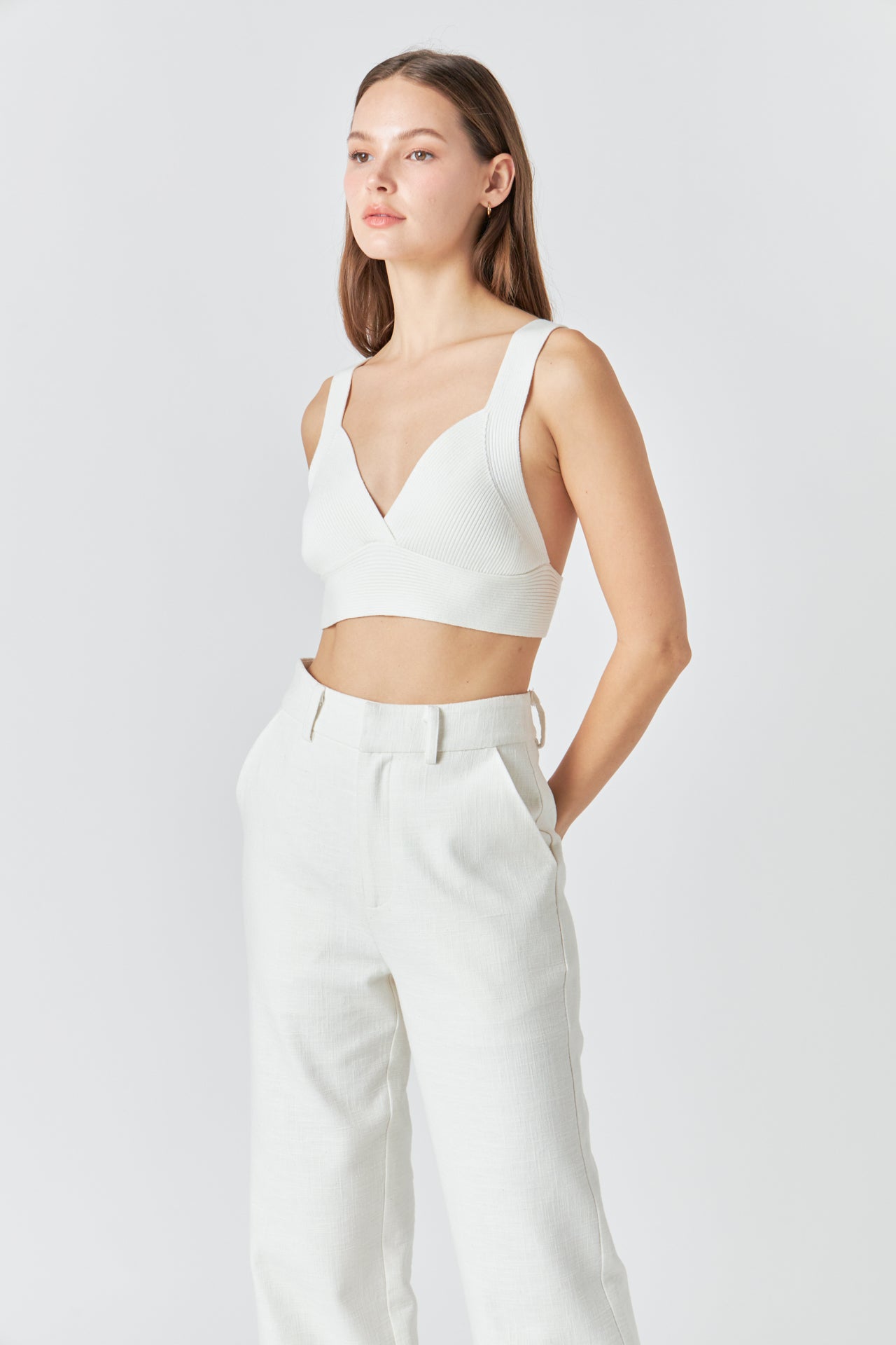 This bralette was made for flaunting. The Back Tie Elevated Knit Bralette offers just the right amount of coverage with a little extra something-something. The knit fabrication is stretchy and comfortable while the back tie detail gives this bralette a little extra flair. The thick straps provide support and the cropped length is perfect for showing off your favorite high-waisted bottoms.