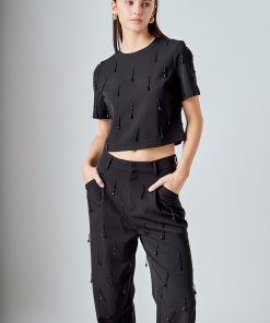 Our Beaded Pants will be the perfect addition to your wardrobe! Featuring a high waistline and a relaxed straight fit, these stylish pants are covered in beaded embellishments that will surely make you stand out. The hook and bar closure give you the perfect fit for any shape or size. Great for formal or casual occasions, these unique trousers are sure to turn heads. Shop now to make a statement and experience the ultimate in comfort and style.