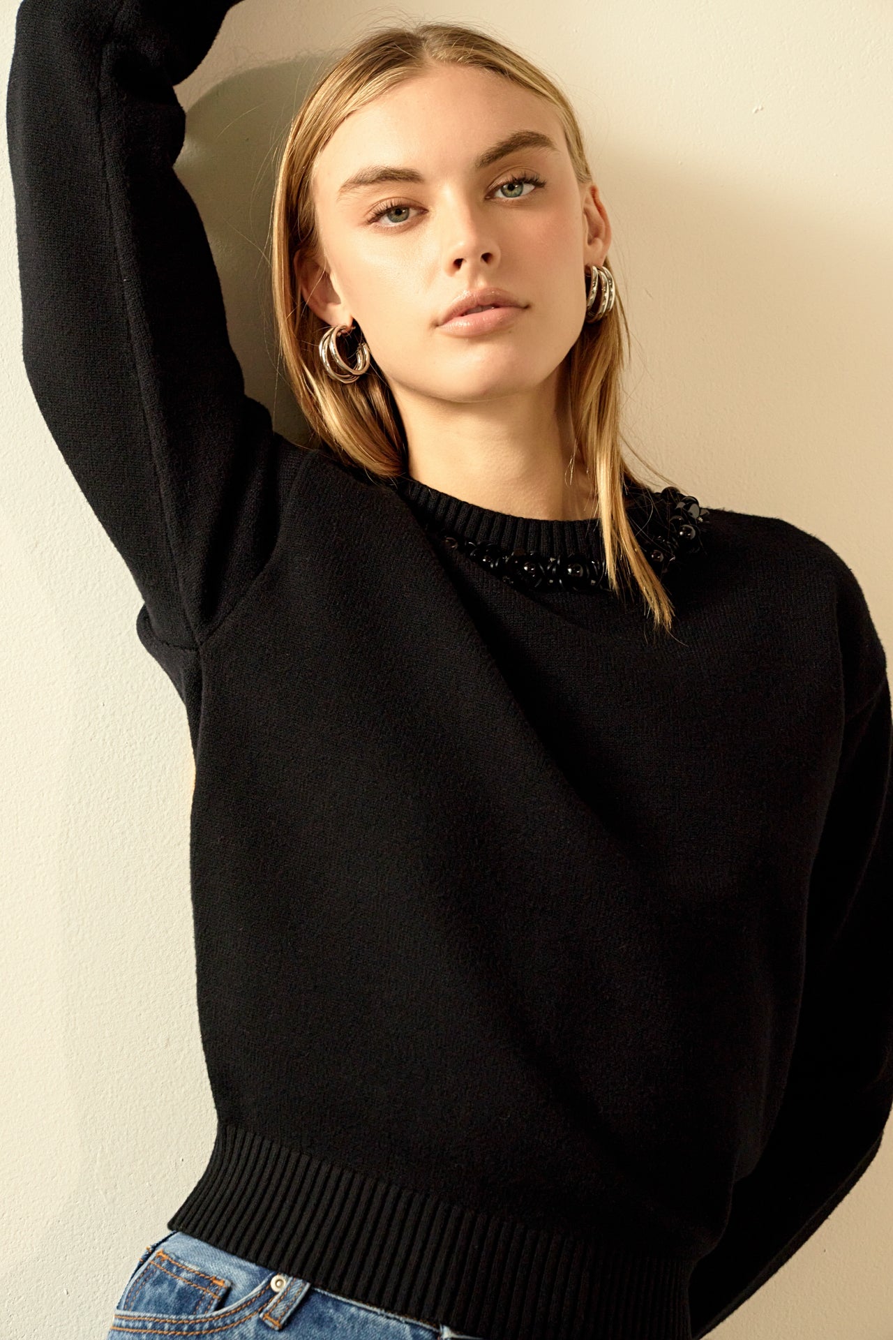 Looking for a stylish and elegant addition to your winter wardrobe? Look no further than our Beaded Sweater! This gorgeous sweater features intricate beadwork along the neck, adding a touch of sophistication to any outfit. Made from high-quality knit material, it will keep you warm and cozy on chilly days. But the best part? It also includes a back button and loop closure, as well as a back keyhole for a unique and trendy twist. Don’t miss out on this must-have sweater that will enhance your look and keep you on-trend all season long.