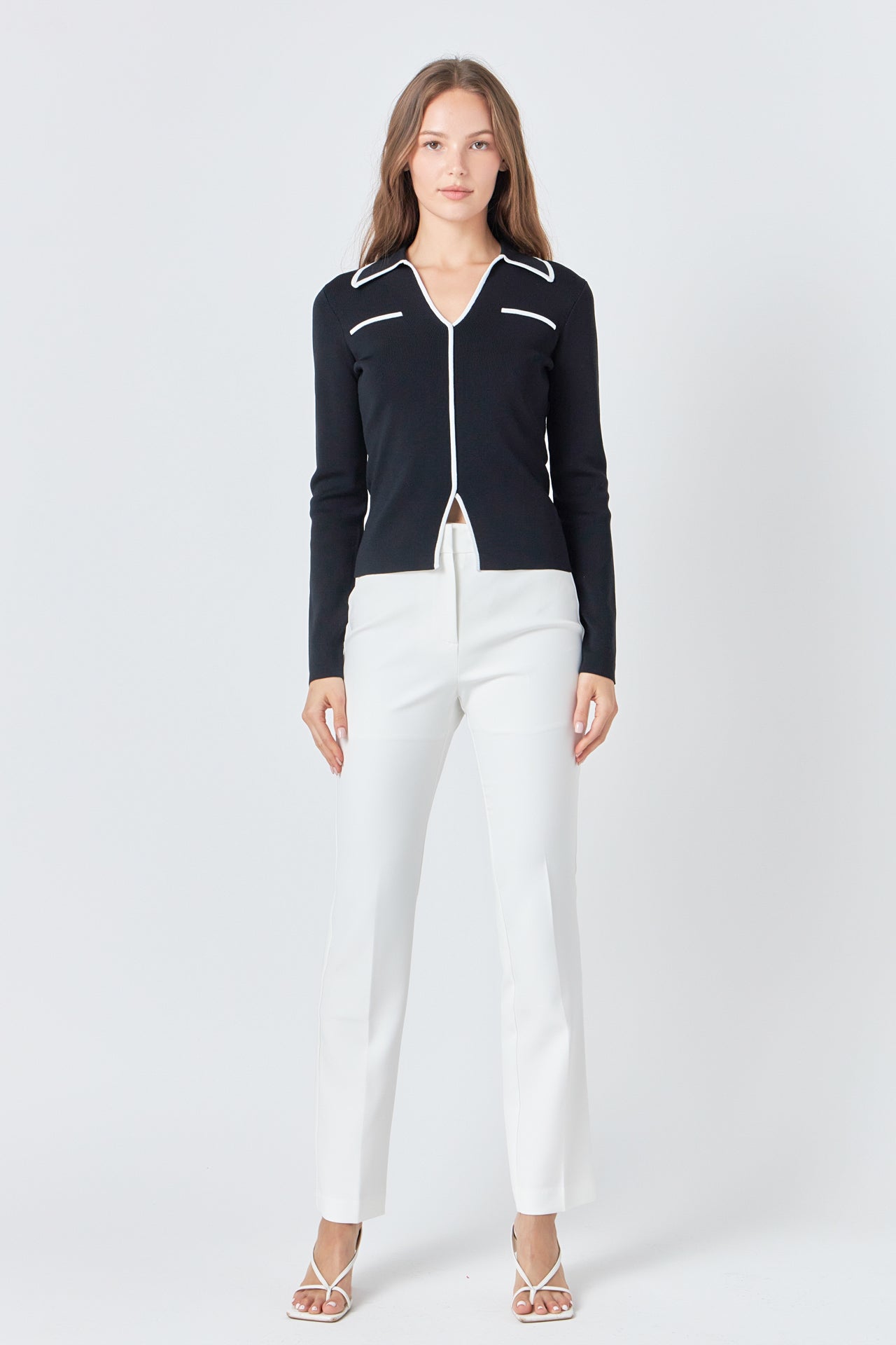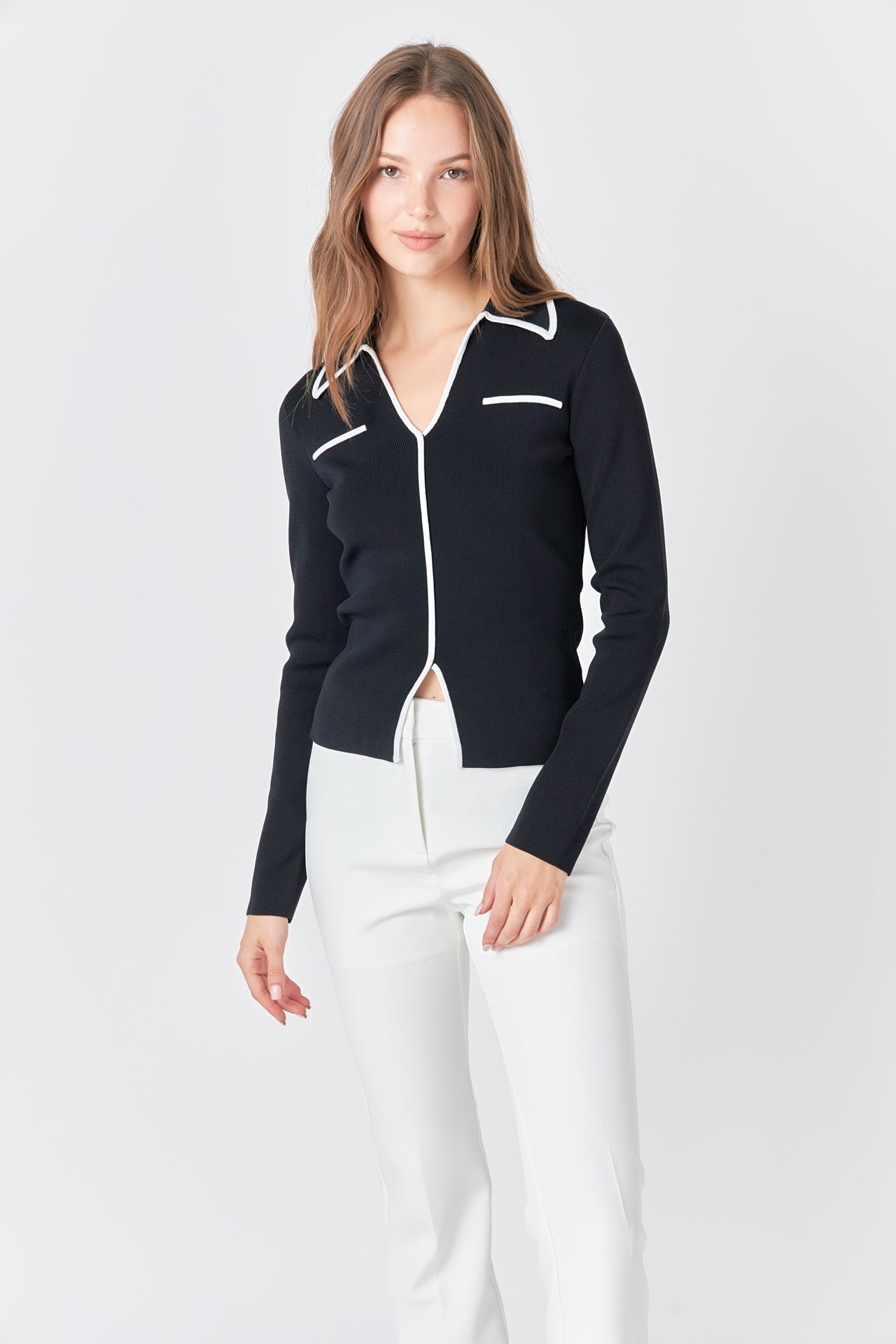 Elevate your wardrobe with our Binded Collared Top. Crafted with a luxurious knit fabric, this top is perfect for both casual and formal occasions. The collared neckline adds a touch of sophistication, while the binding detail creates a tailored look. With long sleeves, this top is suitable for year round wear. Perfect for layering or dressing up on its own, this top is a must-have for any fashion-forward individual. Don’t miss out on this versatile and trendy piece. Shop now and add it to your collection of stylish tops!