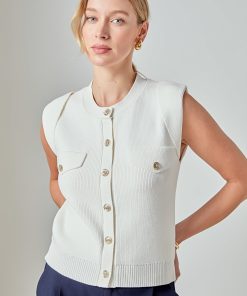 Stay stylish and cozy with our Button-Up Sweater Vest! Featuring a timeless vest design with pocket flaps and a front button closure, this piece adds a touch of sophistication to any outfit. The sleeve cuffs add a tailored finish, making it perfect for both casual and formal occasions. This versatile piece is a must-have in every wardrobe. Perfect for layering, this vest will keep you warm and fashionable all season long.