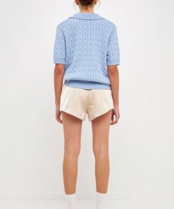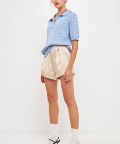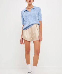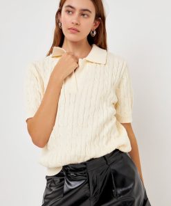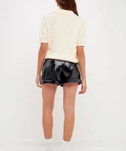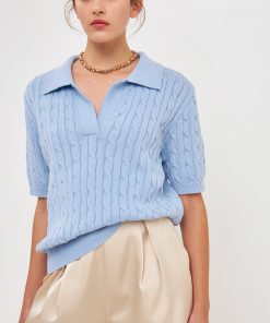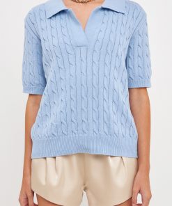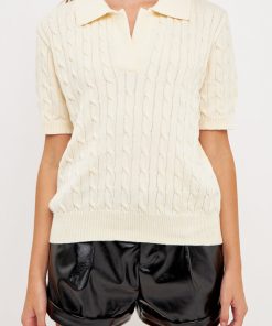 This cable knit sweater is not only soft and comfortable but also stylish. The collar and short sleeves add a modern twist and make this sweater easy to pair with all of your favorite bottoms. Whether it’s faux leather pants or a high-waisted skirt this sweater will add the perfect cozy element.