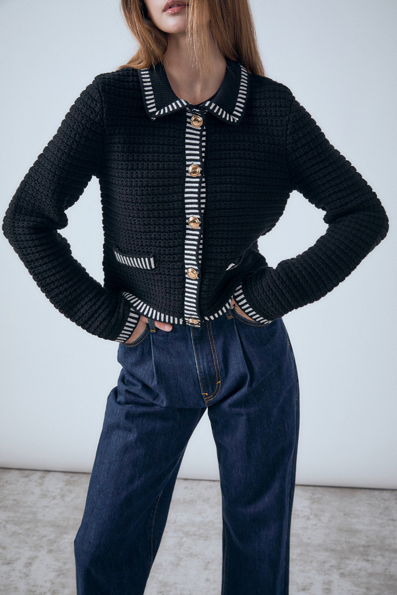 Get ready to elevate your sweater game with our must-have Celine Border Buttoned Jacket. Crafted from a luxurious knit, this jacket features a beautiful border detail that adds a touch of sophistication. The front buttons make for easy wear, while the collar adds a polished finish. Perfect for both work and weekend, this versatile piece will keep you cozy and stylish all season long. Upgrade your winter wardrobe with our Celine Border Buttoned Jacket and stand out in style. Shop now and stay on-trend with this season’s hottest knitwear.