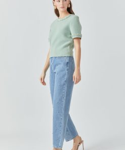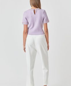 This Chain Trim Knit Short Sleeve Top is the perfect combination of comfort and style. The round neckline and short sleeves are designed with a ribbed detail for an elevated look. The back features a keyhole closure for a modern silhouette. A must-have for your wardrobe.