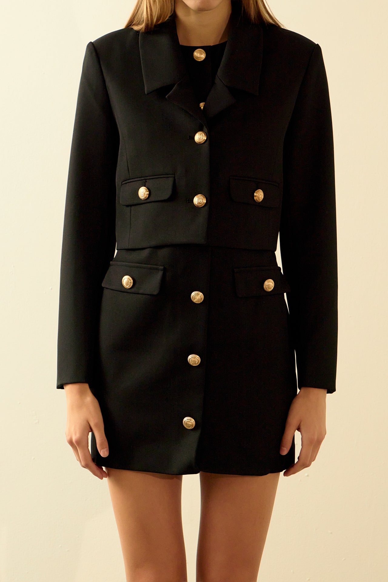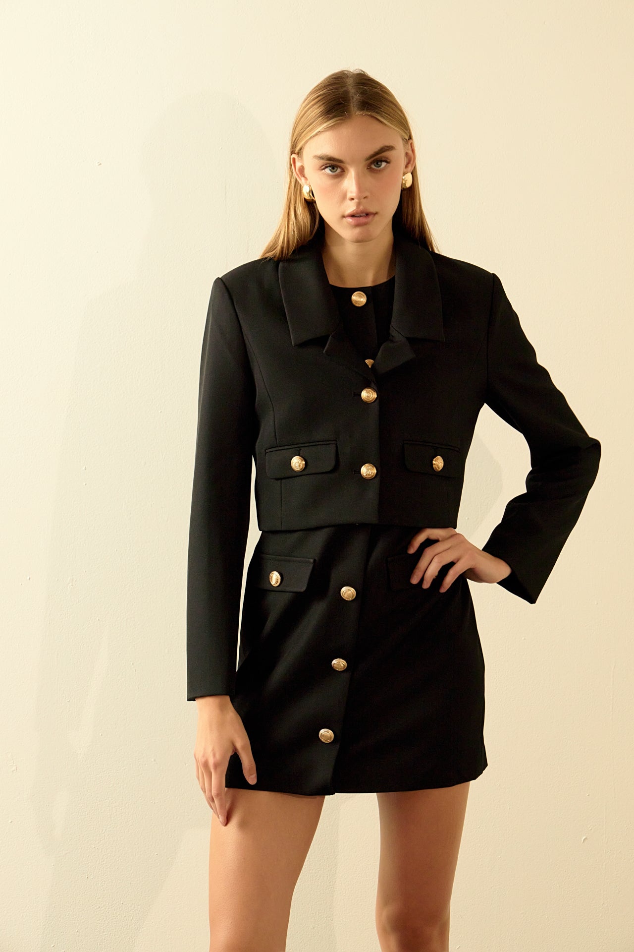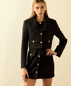 Introducing the Classic Short Buttoned Jacket, perfect for stylish and effortless layering. With its cropped design and long sleeves, this jacket is a must-have for any fashion-forward wardrobe. The single breast style adds a touch of sophistication, while the front button closure ensures a secure fit. This jacket is versatile and can be dressed up or down for any occasion. Stay on-trend and comfortable with this classic piece. Don’t miss out, add it to your collection now!