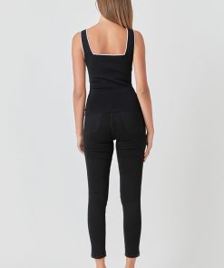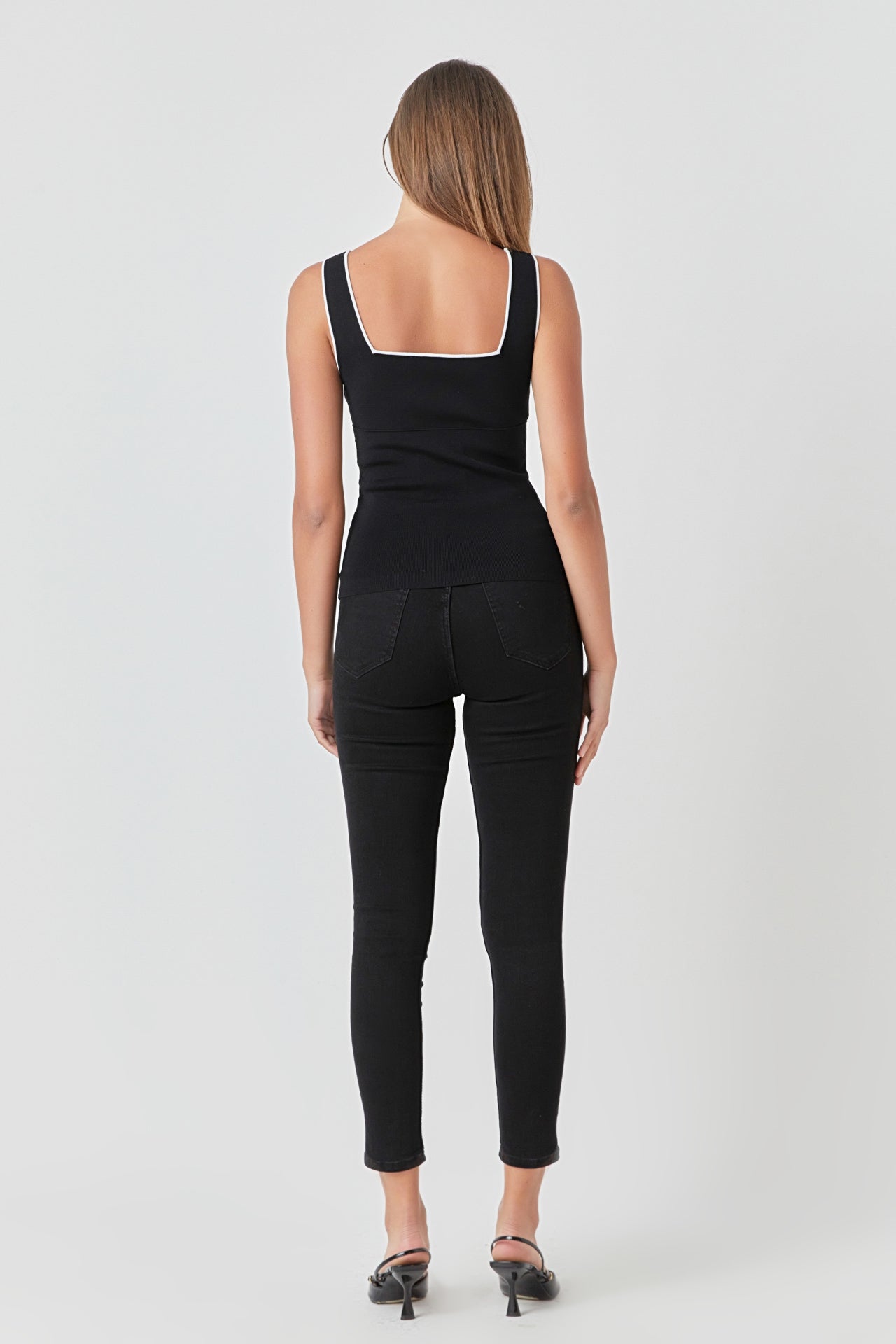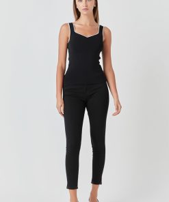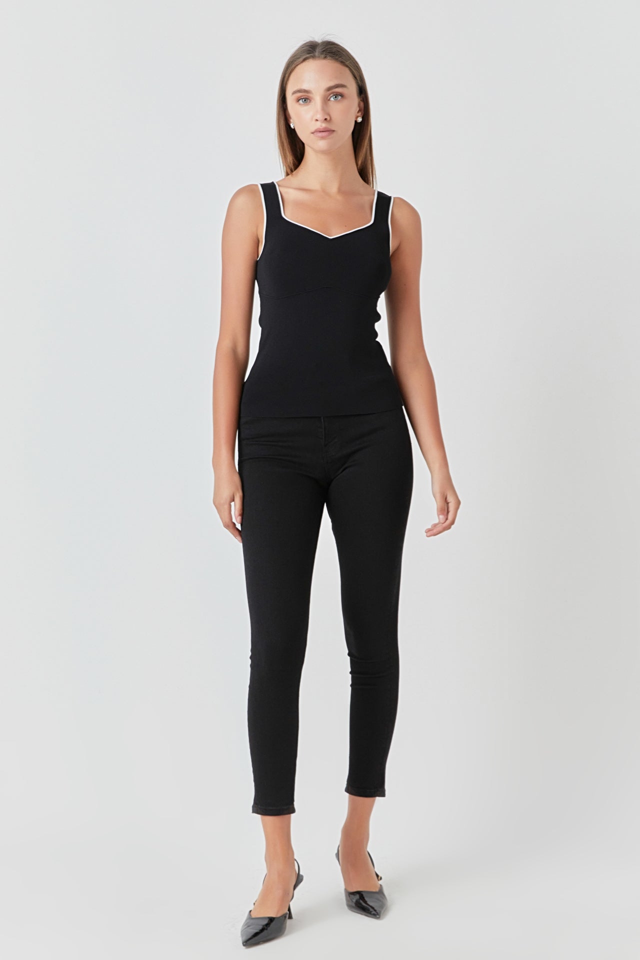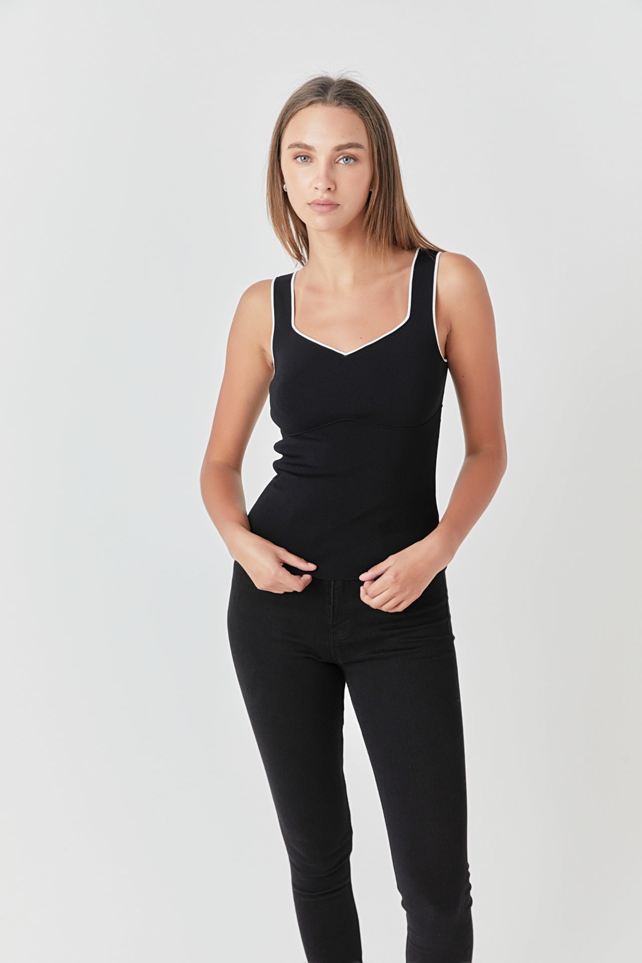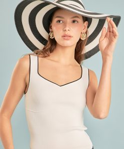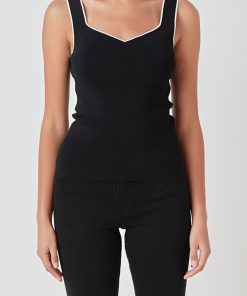 Elevate your style with our Contrast Binding Sweetheart Knit Top. The eye-catching contrast binding details add a touch of sophistication to this must-have top. The sweetheart neckline and sleeveless design create a flattering silhouette perfect for any occasion. Made with a fitted design this top accentuates your curves in all the right places. Whether paired with jeans or a skirt this top is sure to make a statement. Upgrade your wardrobe with this versatile and chic piece. Grab yours now and stand out from the crowd.