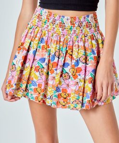 Looking for chic spring summer style? Look no further. This mini length skort is perfect for making a statement. The smocking waistband and tiered skirt detailing are a combination of comfortable and cute while the floral print adds a feminine touch. Get ready to flaunt your style all season in this cotton floral print mini skort.