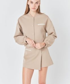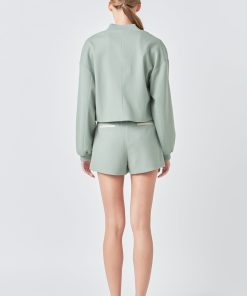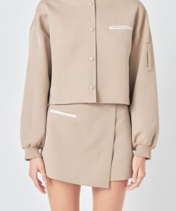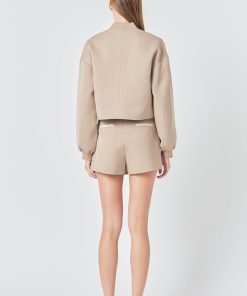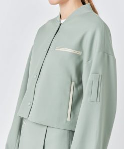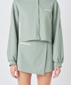 Level up your jacket game with our must-have Cropped Bomber Jacket. Featuring a chic cropped length and classic bomber style this jacket is perfect for both casual and dressed-up looks. The rib neck design adds an extra touch of style while the snap buttons make for easy wear and adjustable fit. Dare to stand out in this must-have piece that oozes cool and will turn heads wherever you go. Made with quality materials this jacket promises comfort and durability. Elevate your style and shop our Cropped Bomber Jacket now!