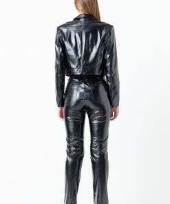 This Cropped Faux Leather Jacket is the perfect combination of comfort and edginess. It features a lapel collar with open front and has a boxy, structured fit with shoulder pads. The buttons add chic and sophisticated look to it. This jacket is perfect to enhance your wardrobe edgy wardrobe. Elevate your style game now with this fashionable piece!