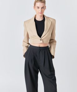 Introducing our must-have Cropped Jacket, designed for fashion-forward women seeking a touch of sophistication. With a stylish collar and V neckline, this jacket exudes elegance and versatility. Crafted with long sleeves and sleeve opening buttons, it is perfect for both day and evening occasions. Made from premium quality fabric, it provides ultimate comfort and a flattering fit. Wear it over any outfit for an instant upgrade or dress it up with statement pieces for a chic look. Stand out from the crowd with our Cropped Jacket, a must-have for every wardrobe.