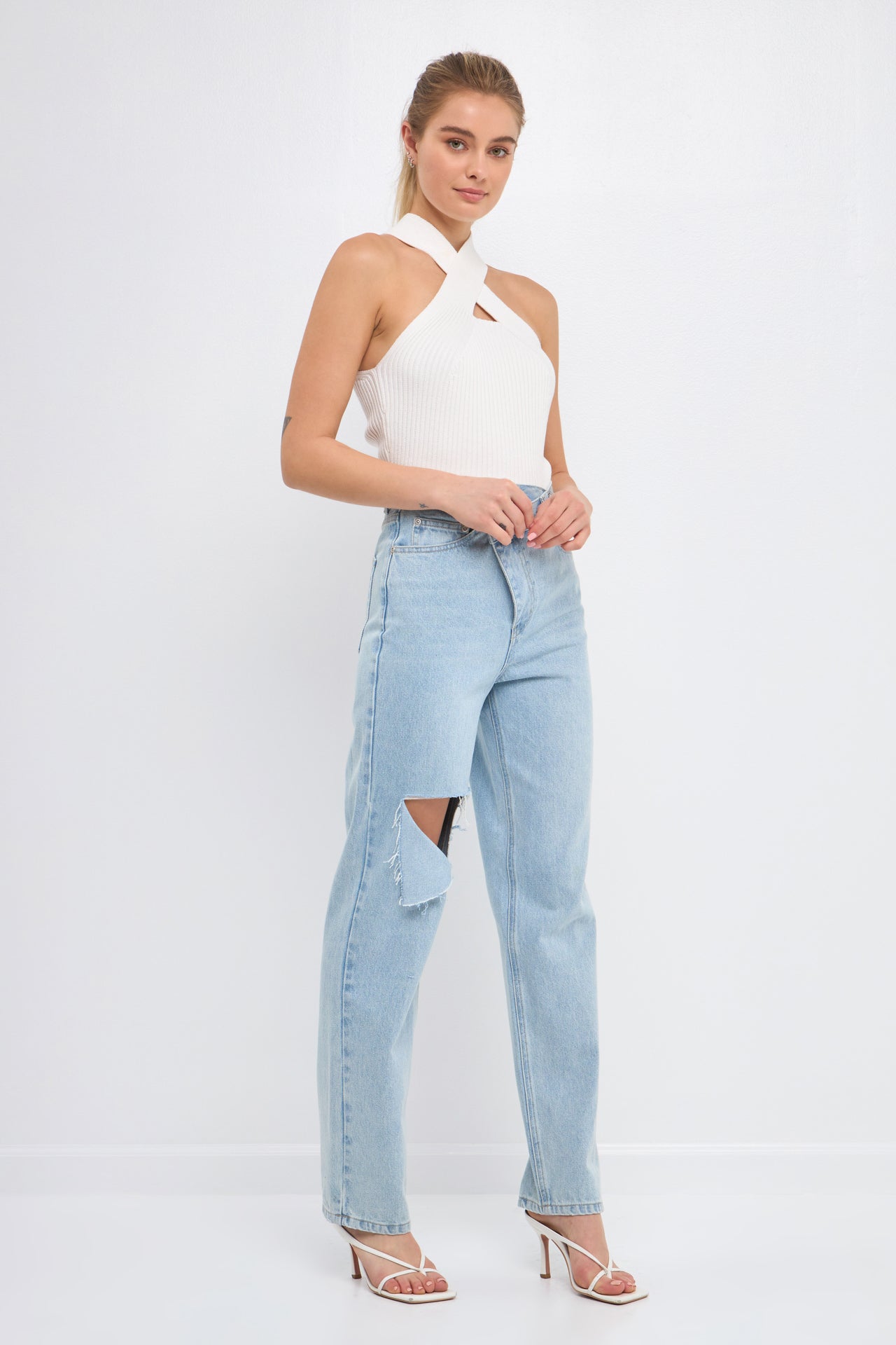 A must-have for all your warm weather style needs. This tank is a key piece for creating endless summer style possibilities. The crossover halter neckline adds a touch of elegance, while the rib knit fabric keeps you comfortable all day long. Whether you’re dressing it up or down, this tank is perfect for any summer occasion.