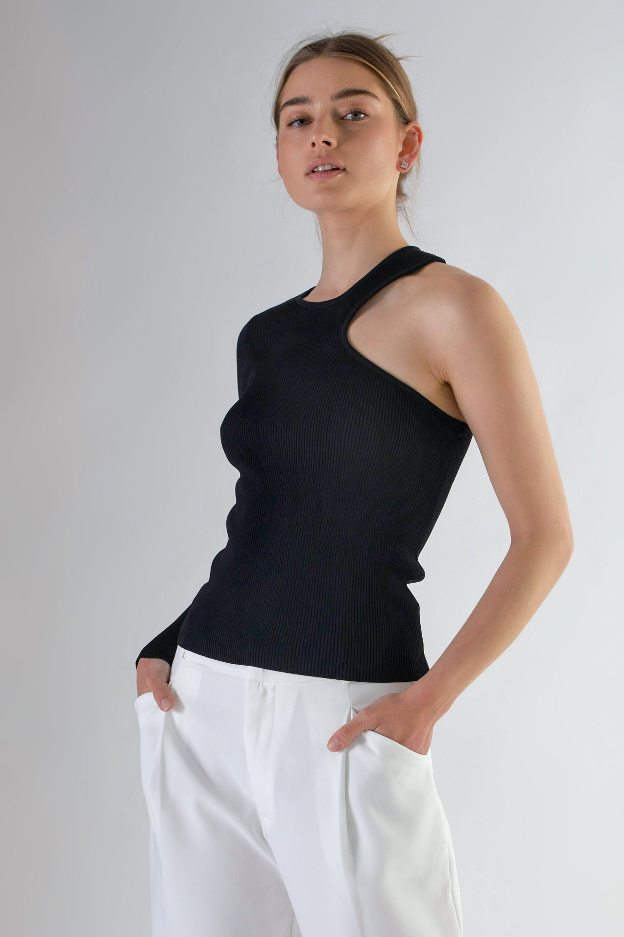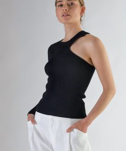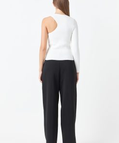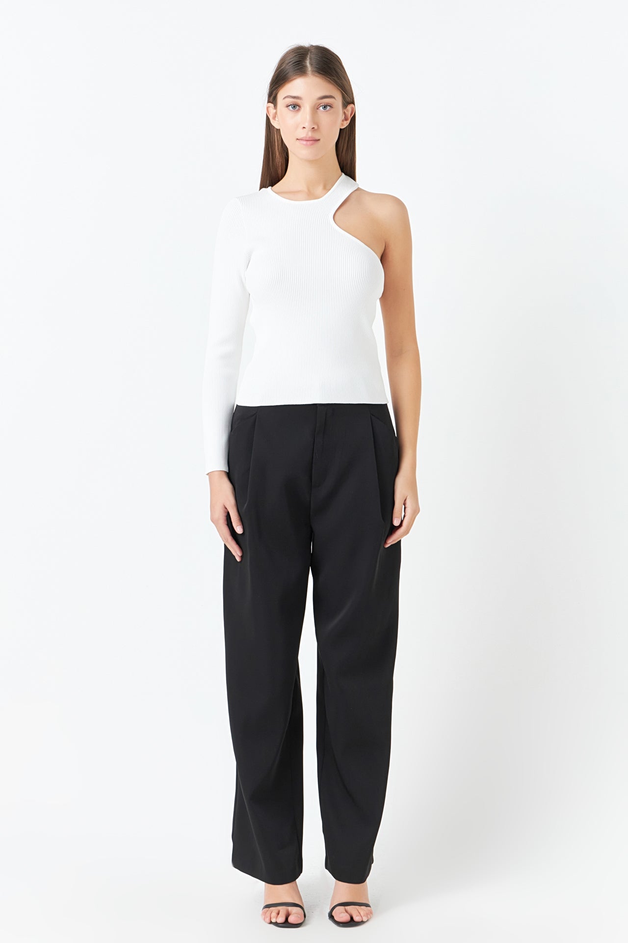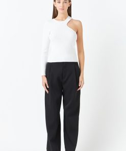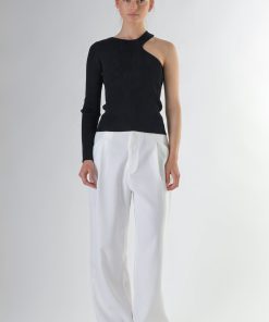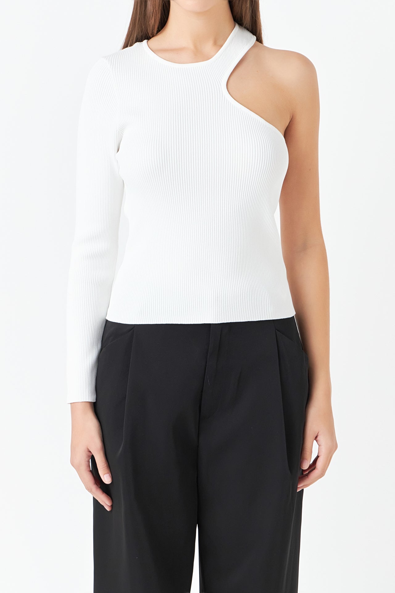 Every girl needs a knit top with cut-outs in her wardrobe. With its one shoulder silhouette and fitted style, this knitted top is perfect for showing off your curves. The round neckline is flattering and timeless. Whether you wear it to work or out on the town, this top is sure to turn heads.