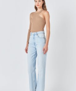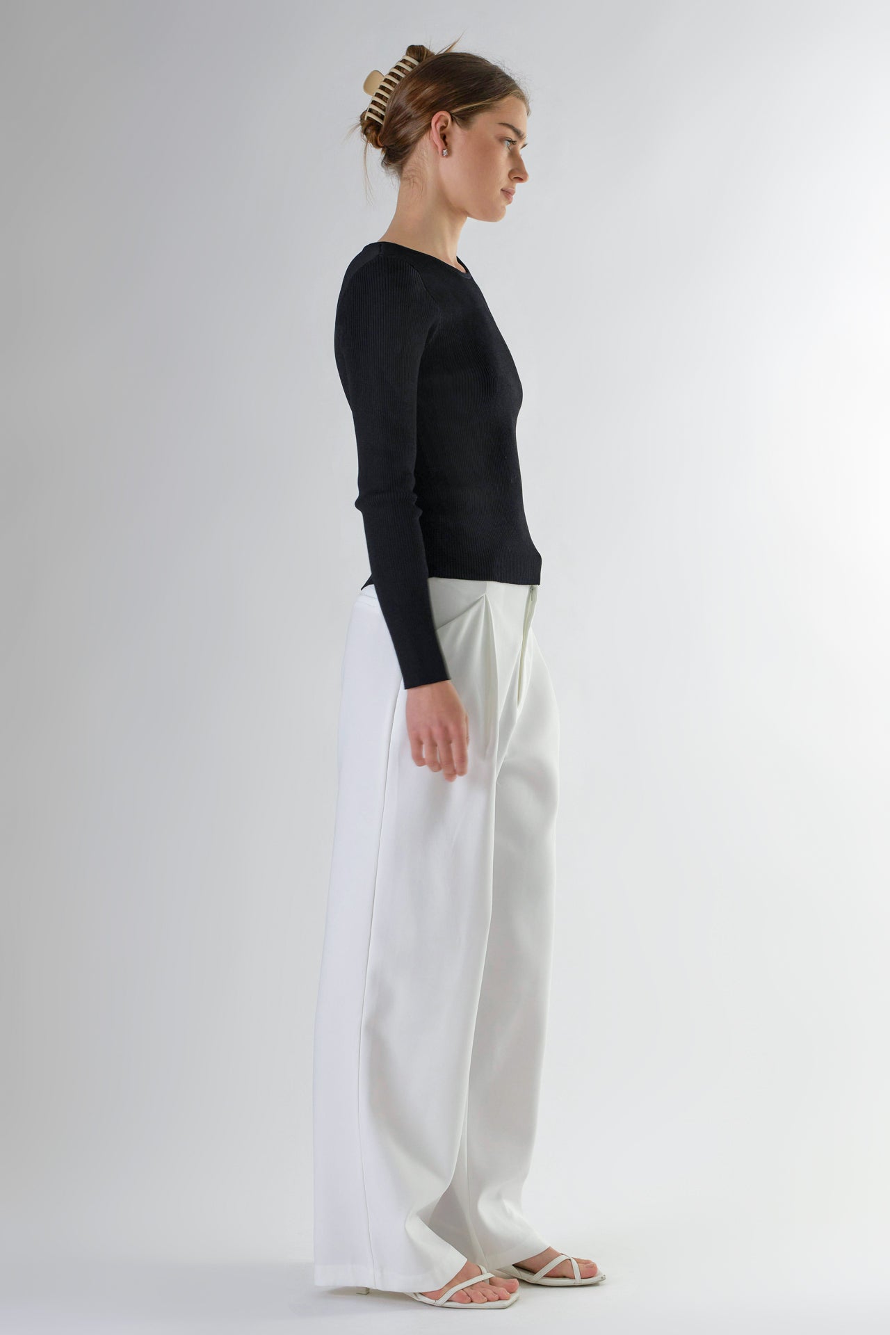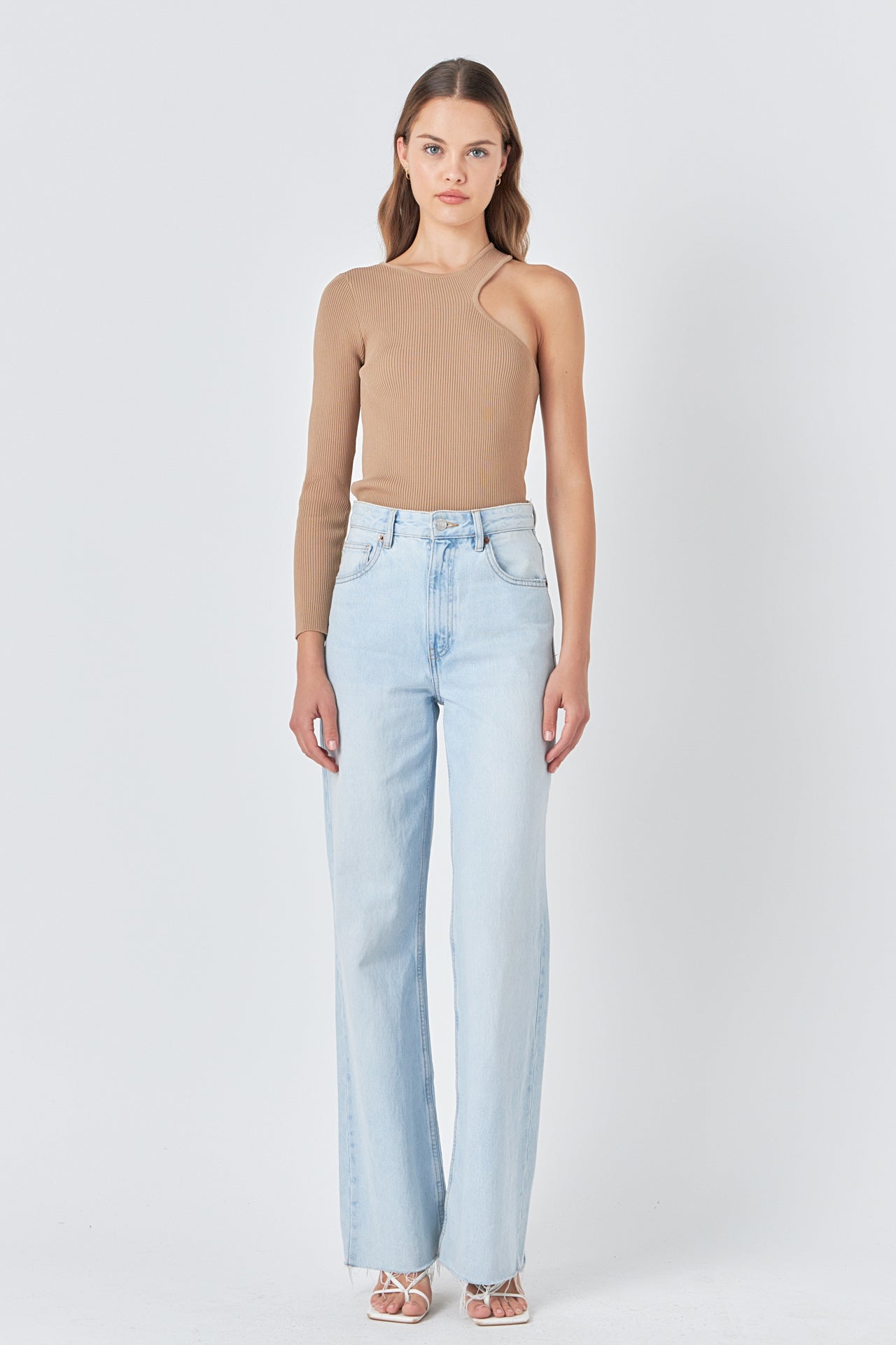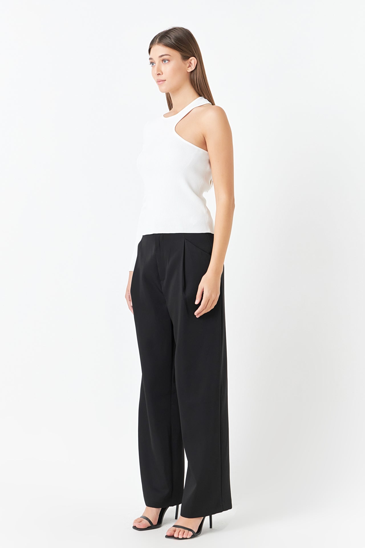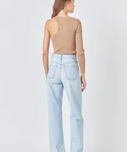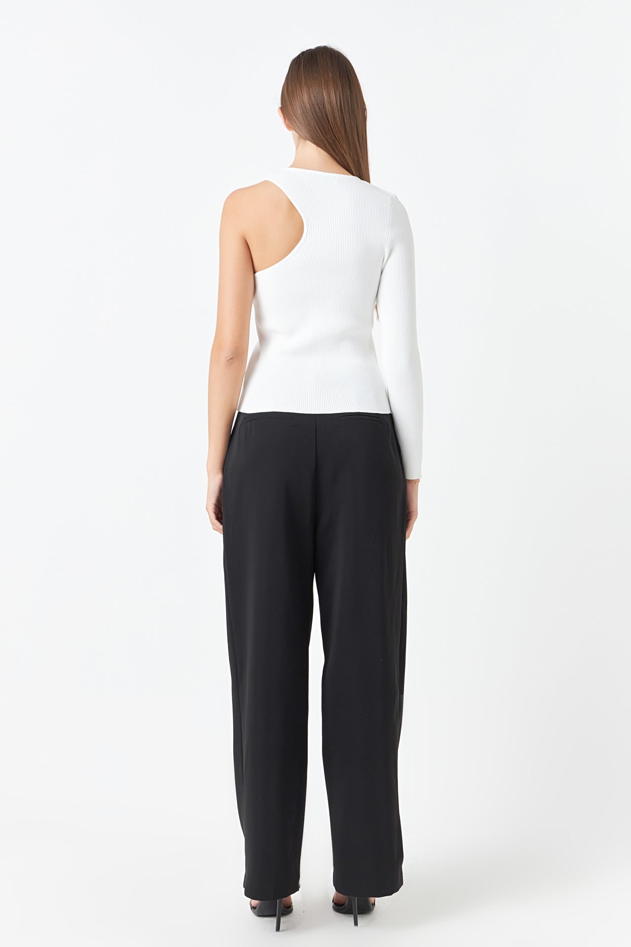 Every girl needs a knit top with cut-outs in her wardrobe. With its one shoulder silhouette and fitted style, this knitted top is perfect for showing off your curves. The round neckline is flattering and timeless. Whether you wear it to work or out on the town, this top is sure to turn heads.