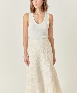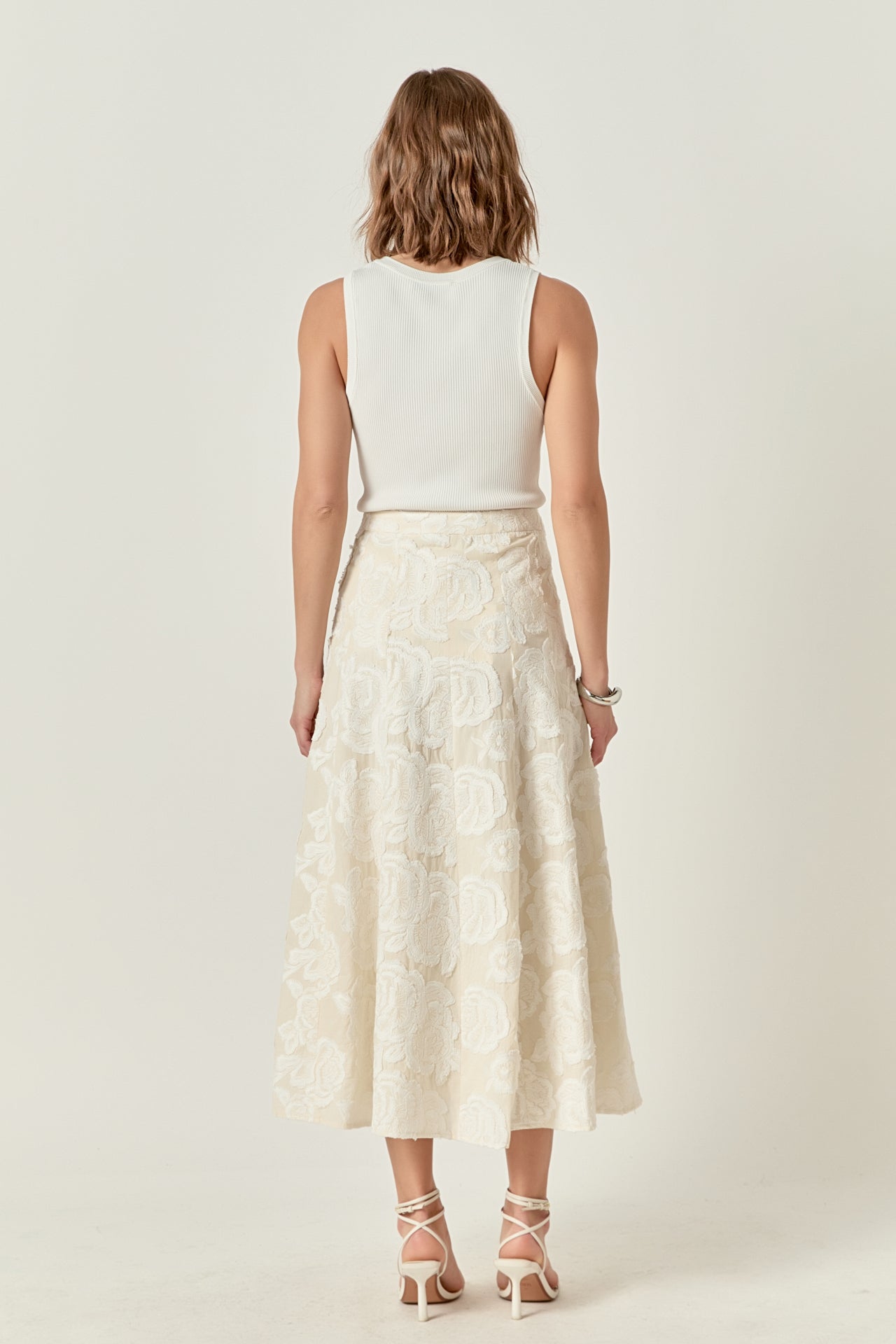 Introduce an eye-catching addition to your wardrobe with our Denali Floral Embroidered Maxi Skirt. Boasting a maxi length design, this skirt will elevate any outfit with its elegant flow. The exquisite floral embroidery adds a touch of femininity, while the waist band provides a comfortable fit. Complete with a lining for added coverage, it’s perfect for any occasion. Don’t miss out on this must-have piece that combines style and versatility. Shop now to add a dash of floral grace to your collection.