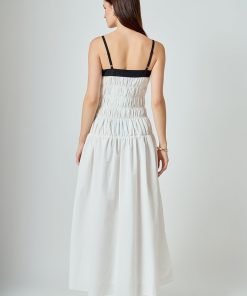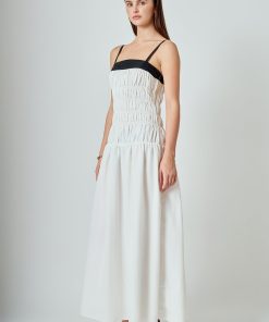Elevate your style with our stunning Amara Smocked Taffeta Maxi Dress. Designed for the fashion-forward, this maxi dress offers the perfect combination of elegance and comfort. The smocked bodice provides a flattering fit while the contrast adjustable straps add a touch of versatility. The fit and flare silhouette accentuates your curves, making it a must-have for any special occasion. With its maxi length, this dress is perfect for showing off your legs and making a statement. Don’t miss out on this unique and chic piece, perfect for any fashionista’s wardrobe. Shop now and be ready to turn heads!