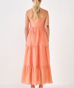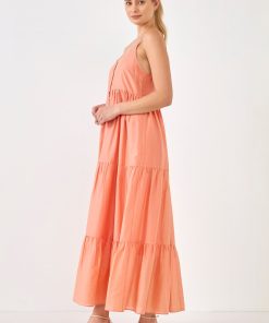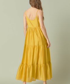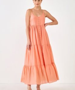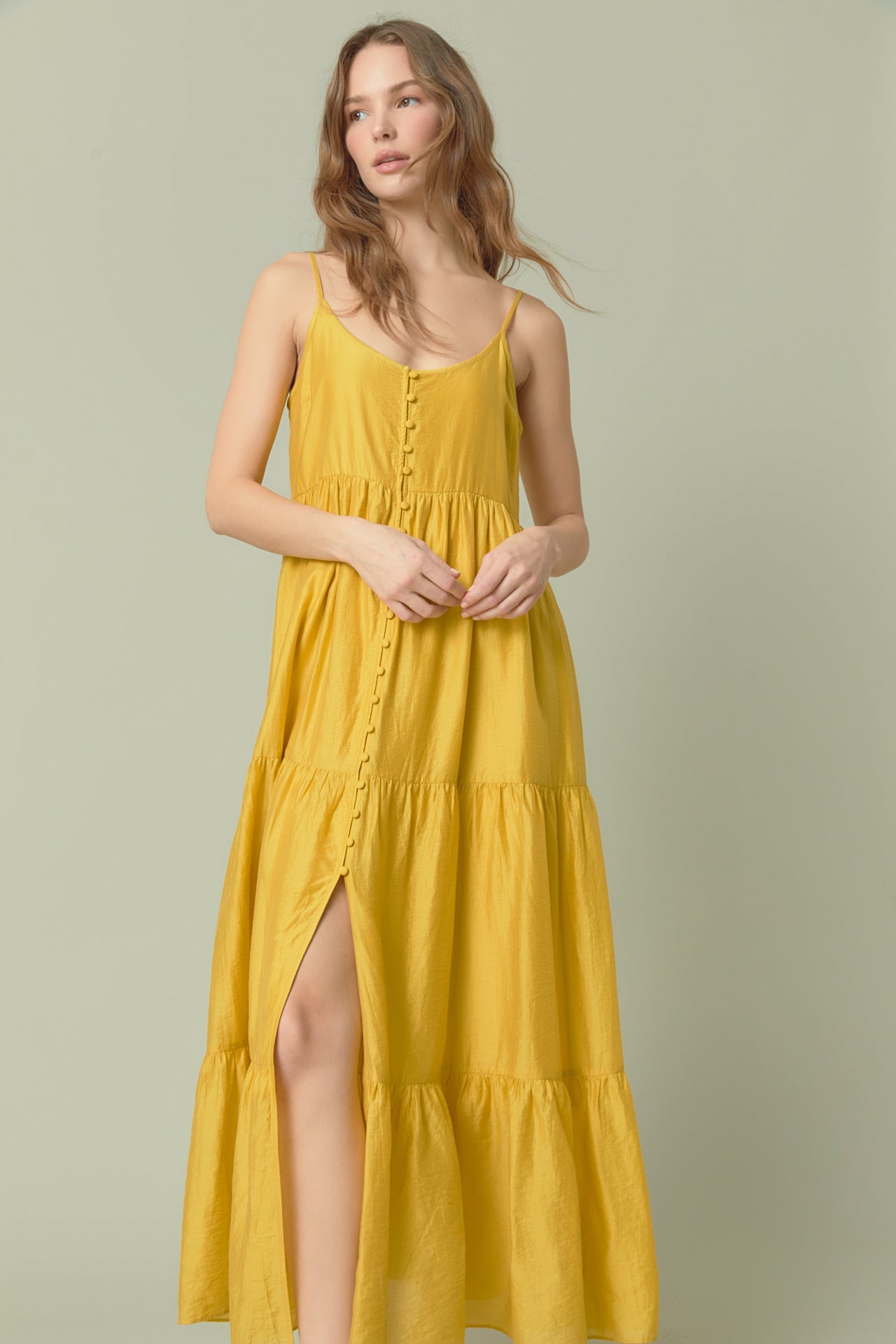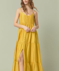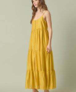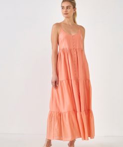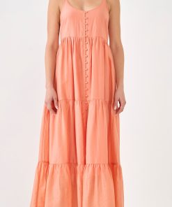 Endless Rose Women’s Dresses Button Detail Tiered Maxi Dress | Mustard|coral