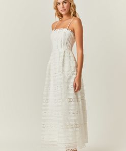 Delicate and feminine, this spaghetti strap maxi dress is perfect for any special occasion. From its beautiful lace detailing to its full lining, this dress is made with elegance in mind. Perfect for weddings, galas or any other formal occasion, this dress is sure to turn heads. Add some sparkle with heels and a clutch for an unforgettable look.