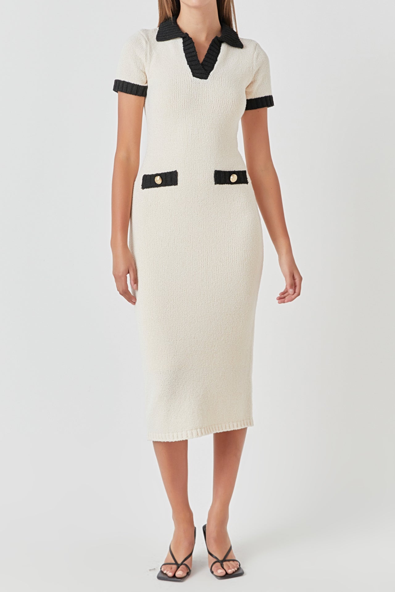 Set the trend in this must-have Crochet Knit Collared Maxi Dress. Made from a chic crochet knit fabric this dress is a standout piece that will have all eyes on you. The fitted silhouette accentuates your curves in all the right places while the maxi length adds a touch of elegance. The classic collar adds a sophisticated touch making it perfect for any occasion. With its unique design and high-quality construction this dress is sure to turn heads. Add it to your wardrobe and step out in style. Perfect for weddings parties and more. Shop now and be the talk of the town.