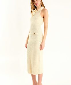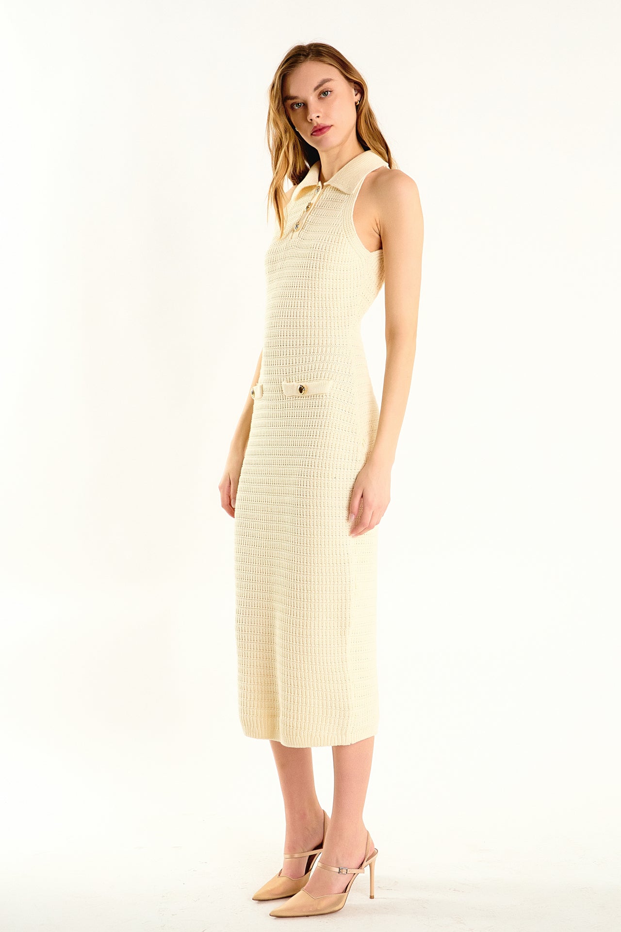 Introducing our chic and stylish Crochet Knit Midi Dress! This dress is every fashionista’s dream with its stunning crochet knit design and elegant collar with placket detail. The racerback adds a modern touch, while the faux welt pockets provide a functional yet fashionable element. Perfect for a day out with friends or a special event, this dress is versatile and on-trend. Shop now and make a statement wherever you go!