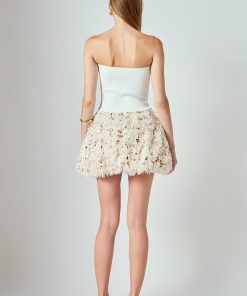Endless Rose Women’s Dresses Feather Blouson Mini Dress | Nude & Gold