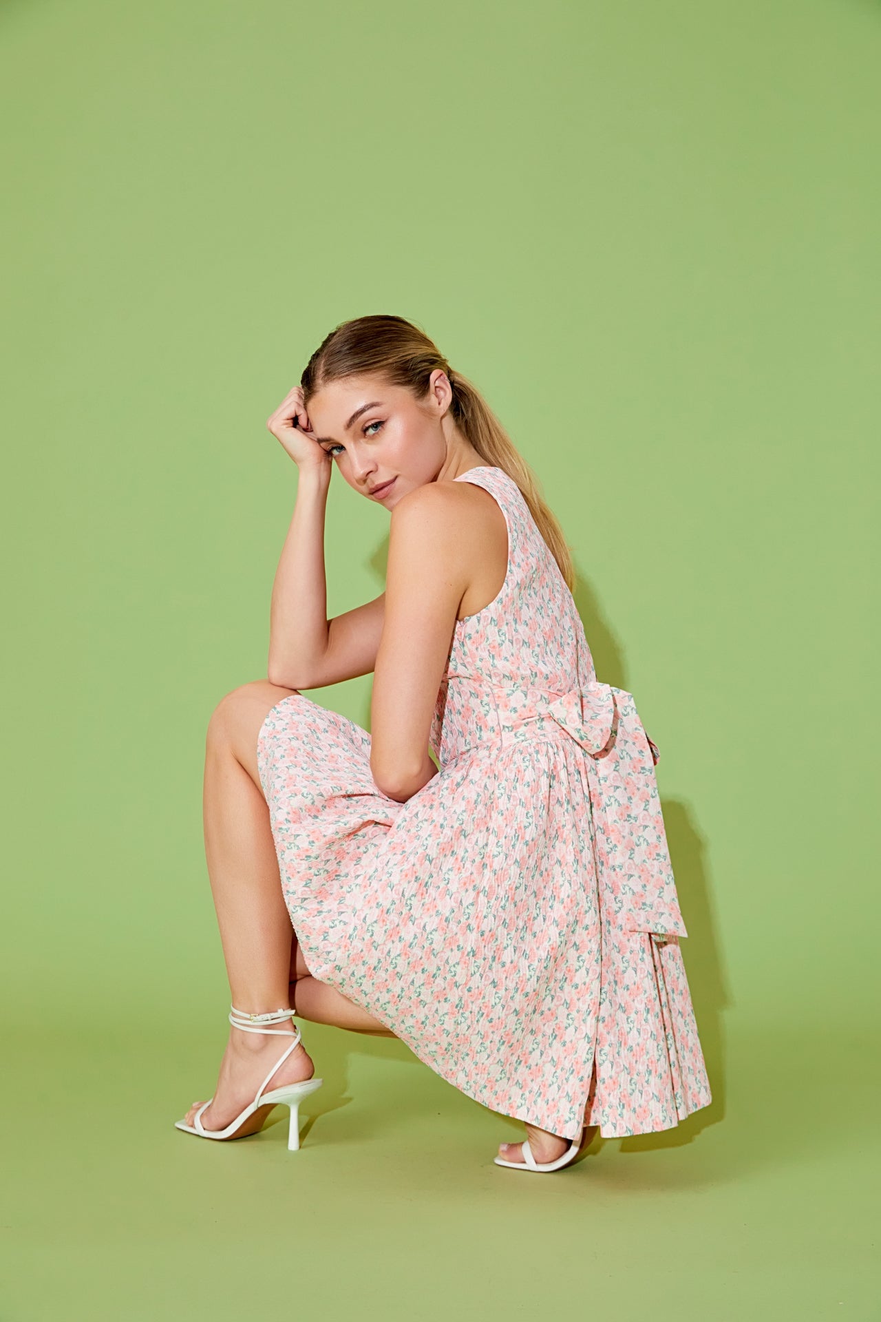 Elevate your wardrobe with our stunning Floral Textured Bow Tie Mini Dress. Designed in a flattering mini length, this dress showcases a beautiful textured fabric that adds an element of sophistication. The delicate floral print is perfect for any season, while the curved neckline adds a touch of femininity. Complete with a charming bow tie detail, this dress will have you looking effortlessly stylish. Pair it with heels for a special occasion or dress it down with sandals for a casual day look. Make a statement and stand out in our Floral Textured Bow Tie Mini Dress.