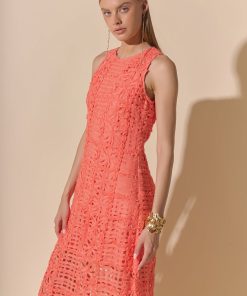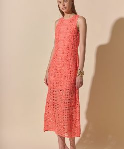 Endless Rose Women’s Dresses Iris Textured Sleeveless Maxi Dress | Coral Orange