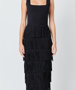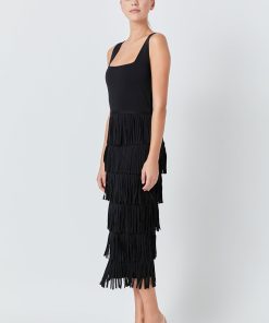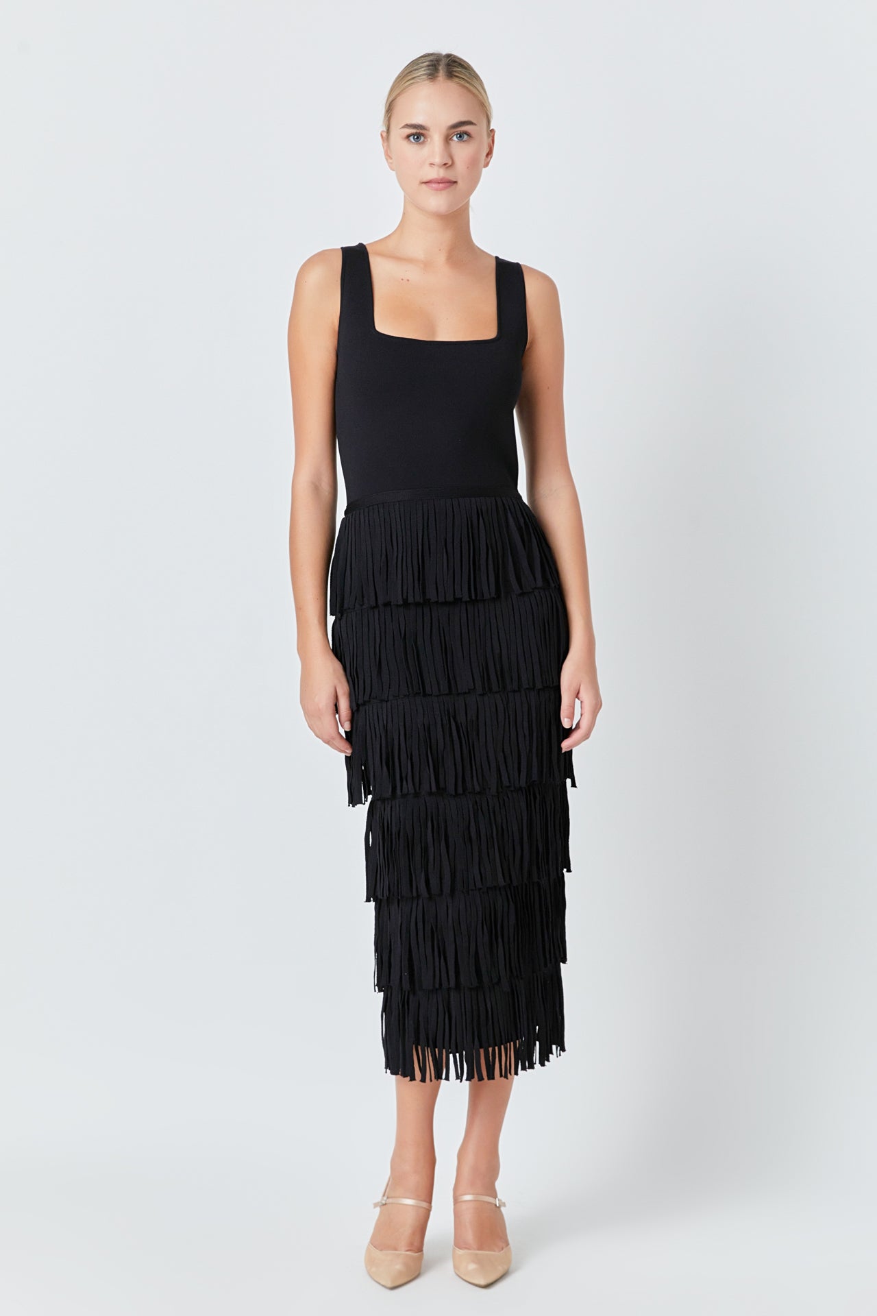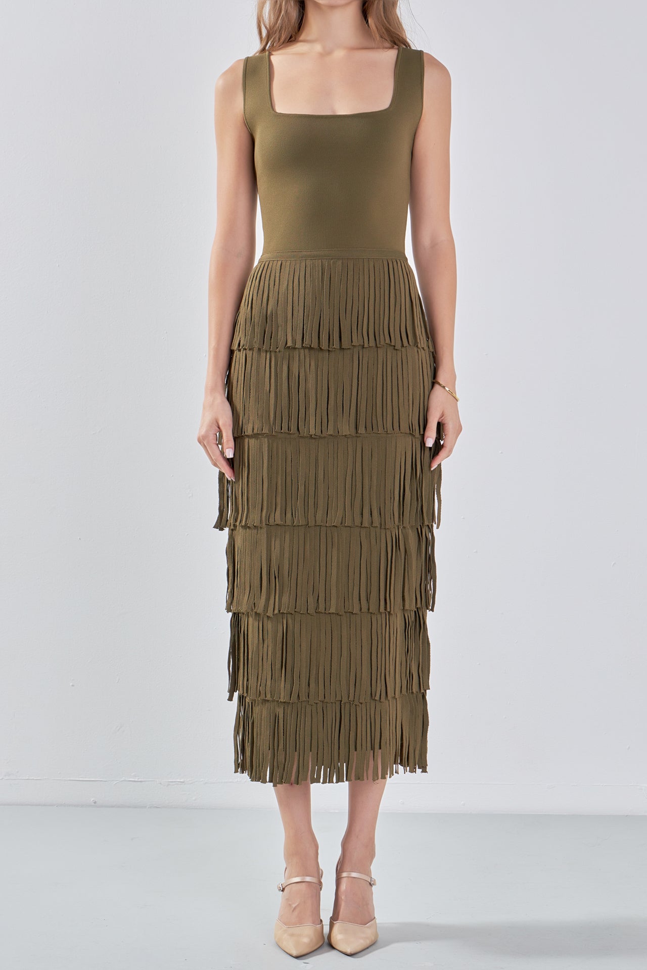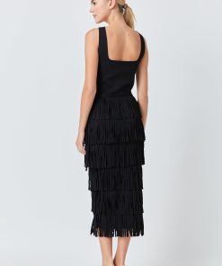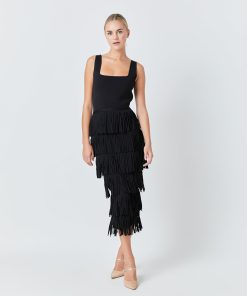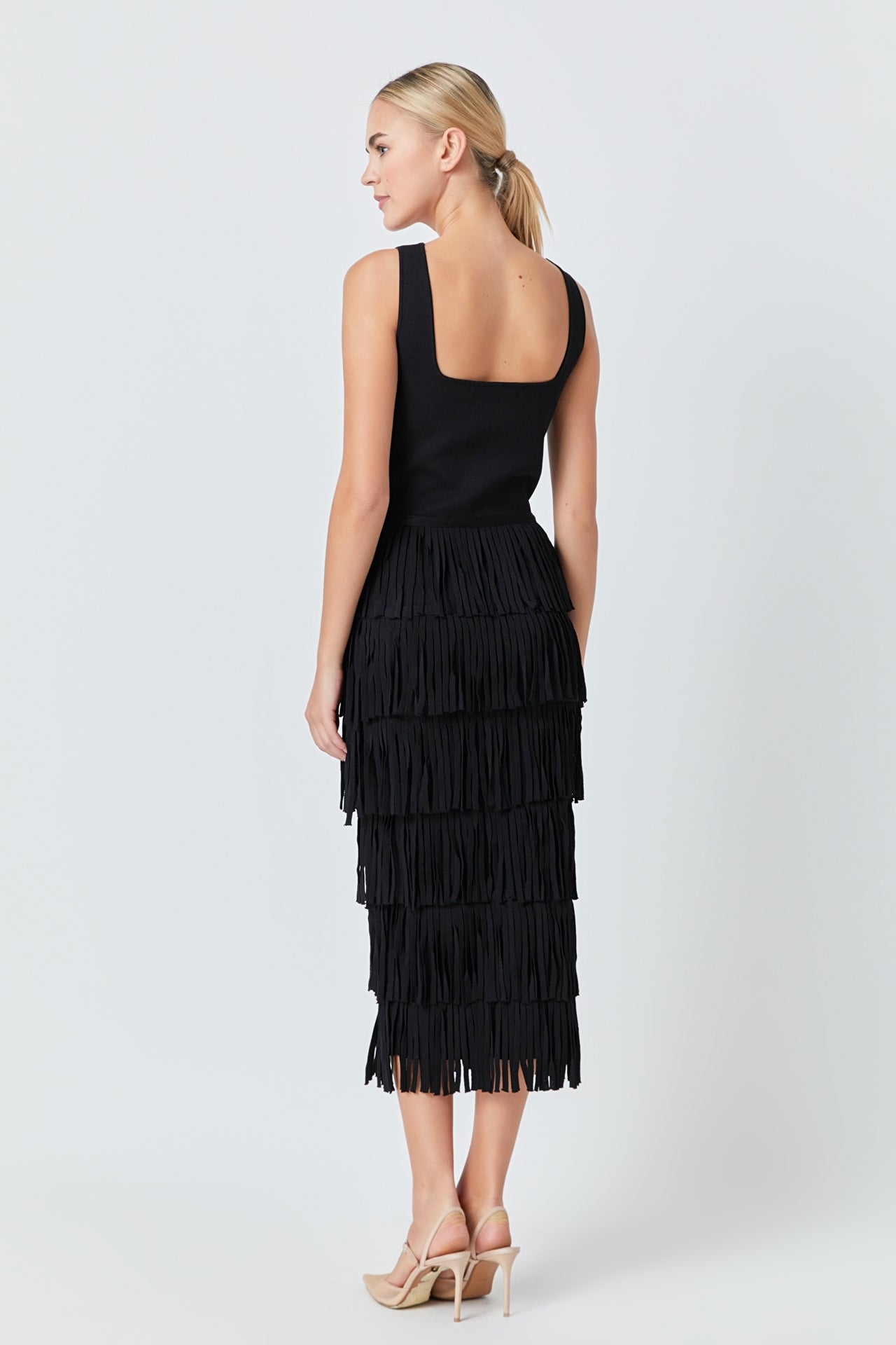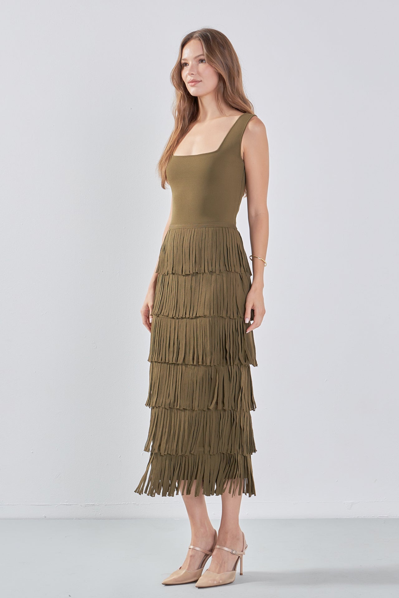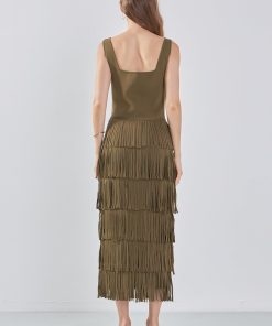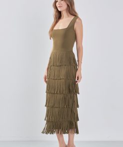 This beautiful Knit Fringe Long Dress is perfect for a special occasion. In a figure-flattering knit fabric, it features a Square neckline, a Tiered fringe skirt, and a Concealed side zipper. This girlie dress stands out with its unique look, so you will be sure to get noticed. The added fringe is the perfect detail to make the dress extra special. Shop now, and you’ll be ready for any event.
