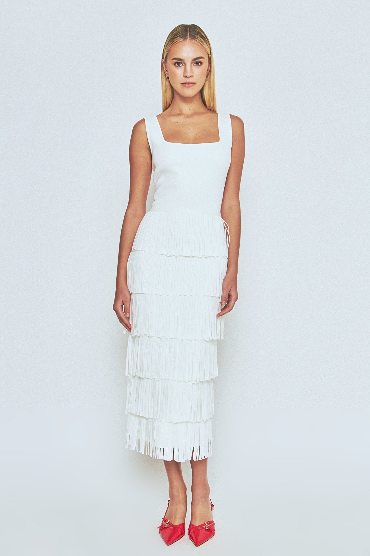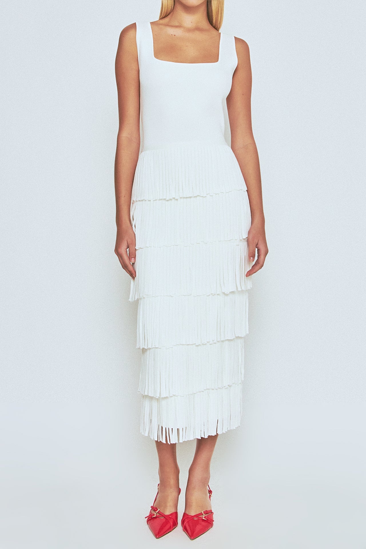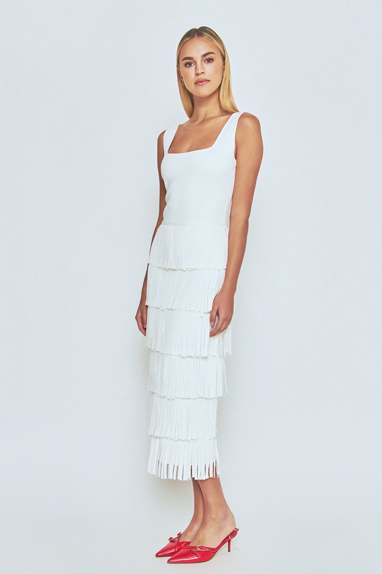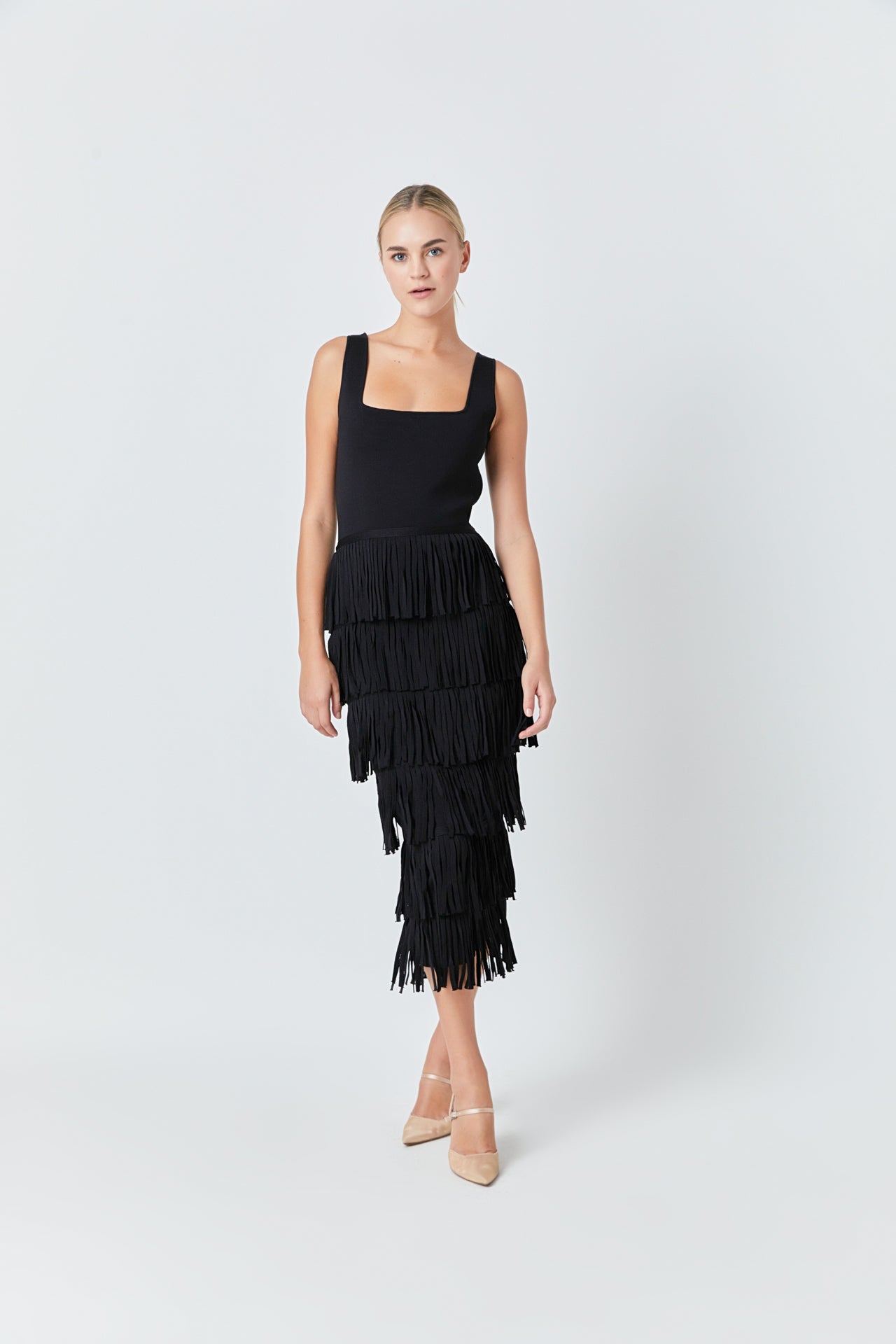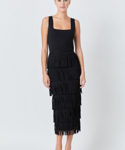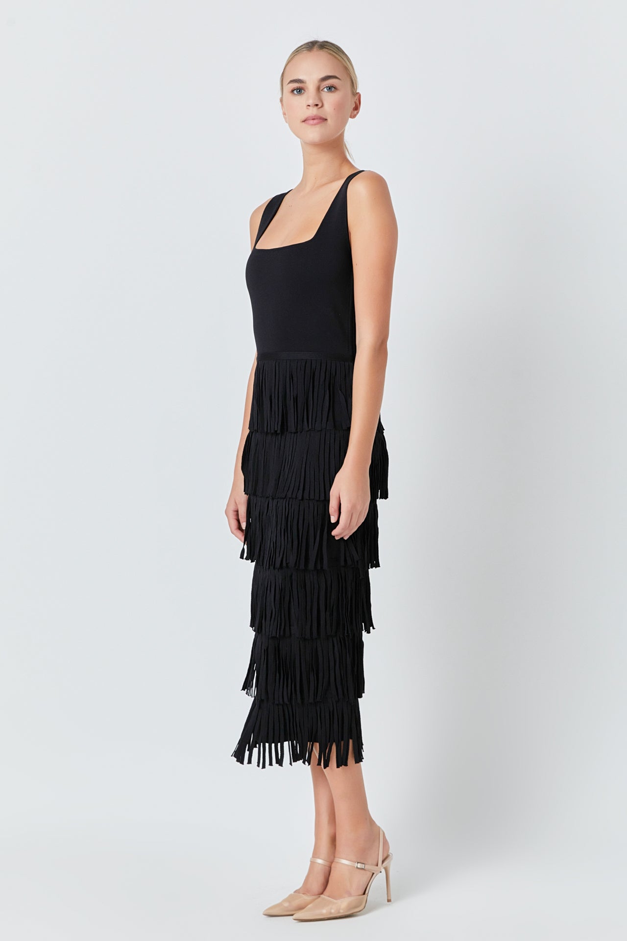 This beautiful Knit Fringe Long Dress is perfect for a special occasion. In a figure-flattering knit fabric, it features a Square neckline, a Tiered fringe skirt, and a Concealed side zipper. This girlie dress stands out with its unique look, so you will be sure to get noticed. The added fringe is the perfect detail to make the dress extra special. Shop now, and you’ll be ready for any event.