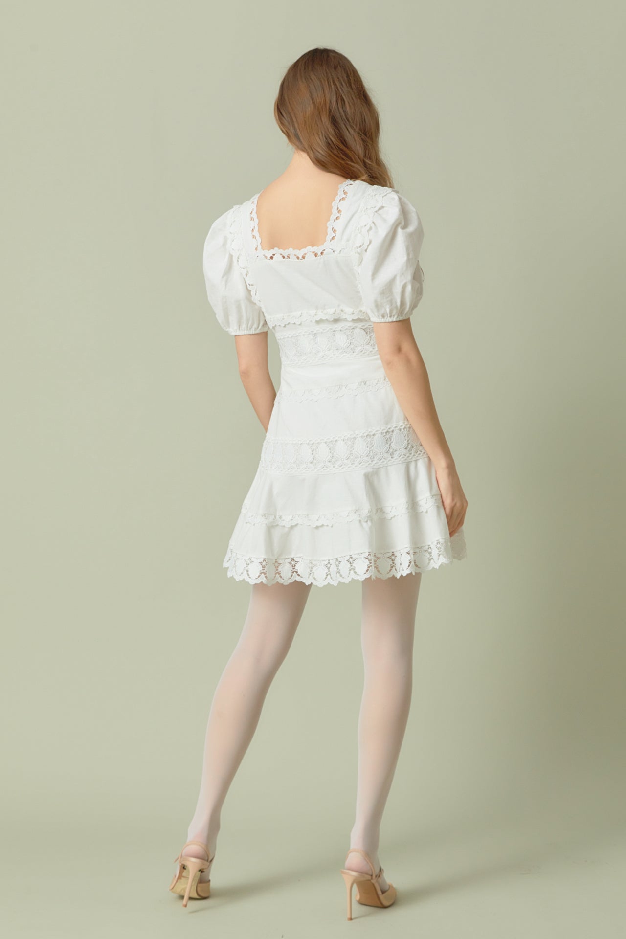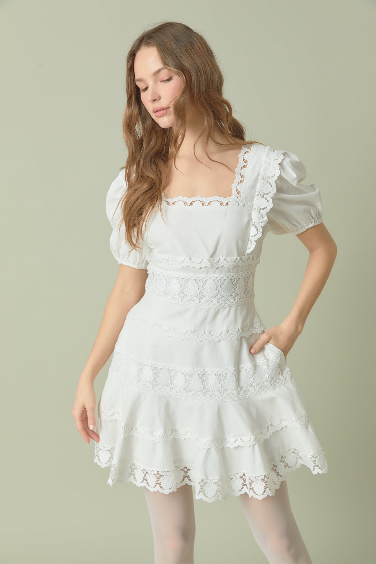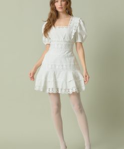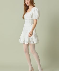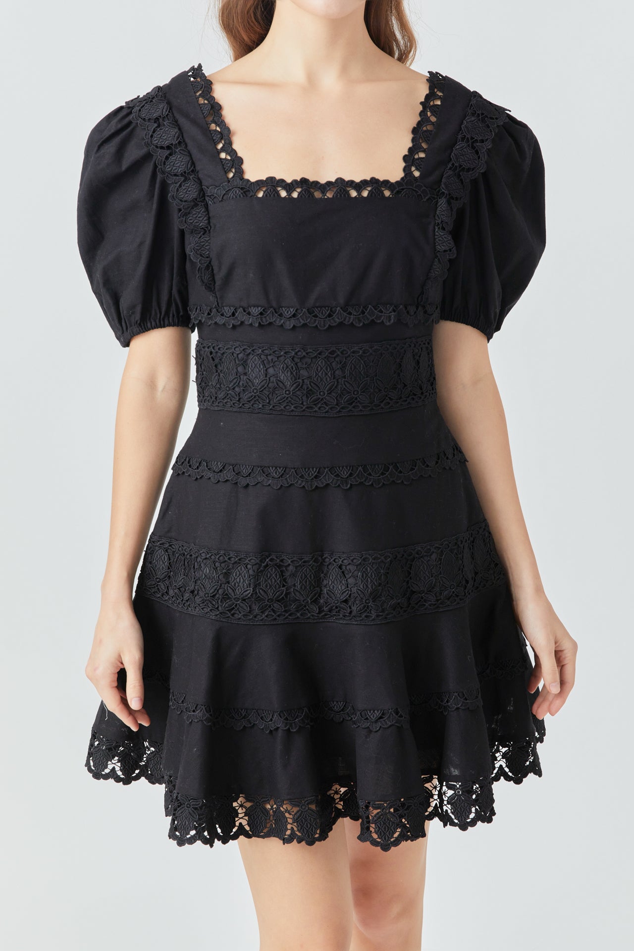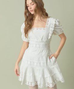 Our Lace Fit-and-Flare Mini Dress is the perfect versatile piece to add to your wardrobe. Wear it during the summer with sandals or pair it with heels and a coat for a winter holiday party. The fit-and-flare silhouette is extremely flattering and highlights your waistline, while the lace details add a feminine touch. And we made sure to add your favorite: pockets!