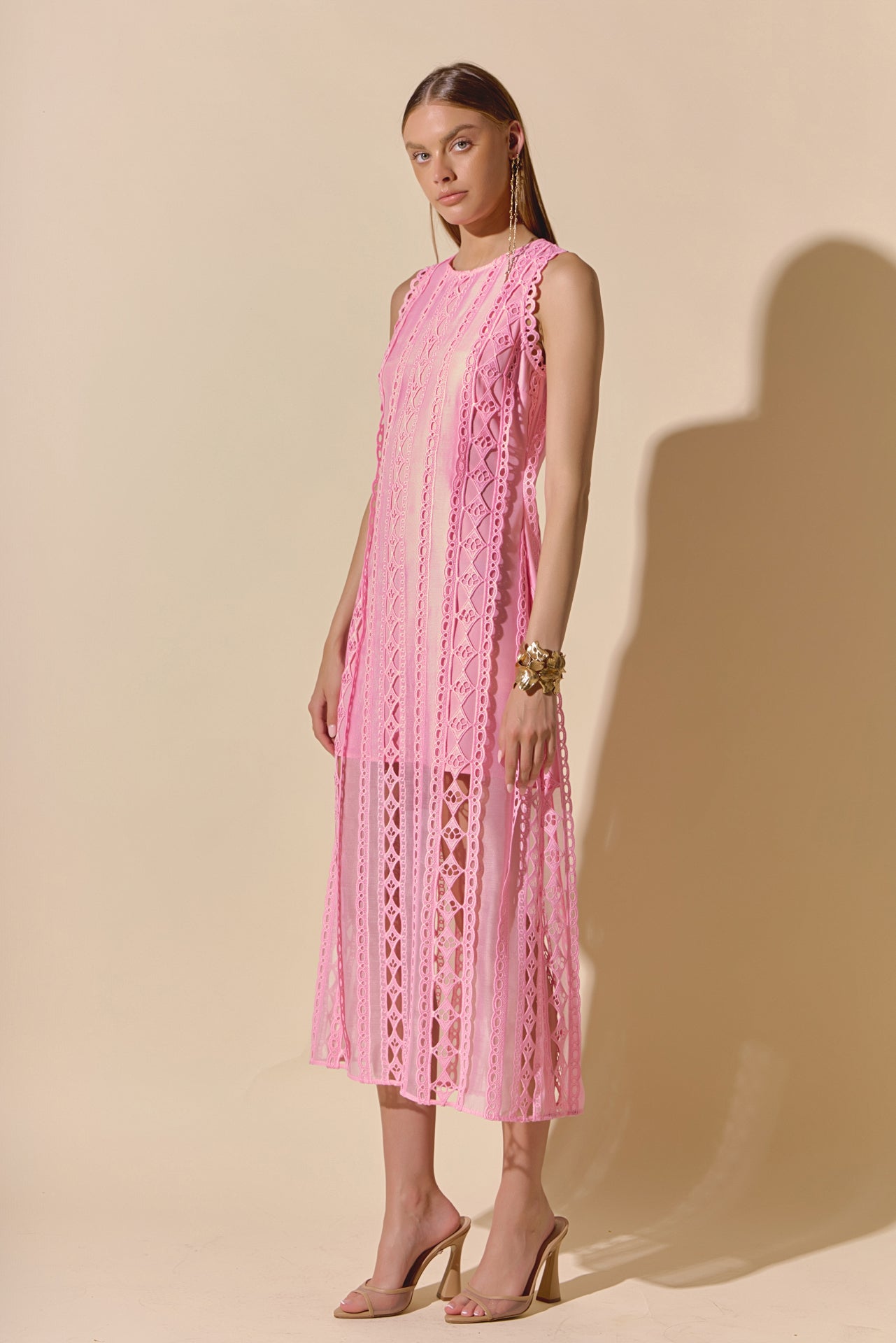 Introducing our stunning Lace Tiered Midi Dress for those who want to make a fashion statement. Made with delicate lace fabric and featuring a gorgeous scallop trim at the armholes, this dress is perfect for special occasions. The round neckline adds a touch of elegance while the midi length is both chic and comfortable. This dress is a must-have addition to any wardrobe. Perfect for date nights, weddings, or any event that calls for a touch of sophistication. Get yours today and turn heads wherever you go!