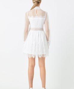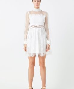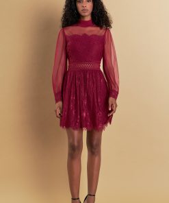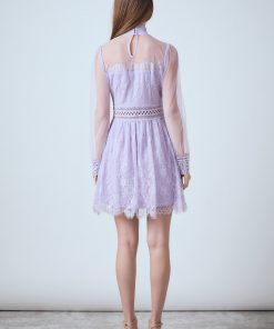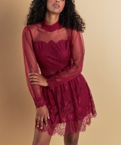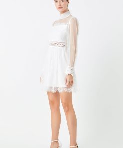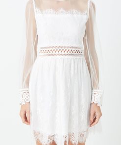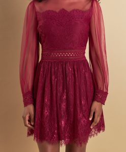 The Long Sleeve Lace Mini Dress is perfect for any woman who wants to show a little bit of skin while remaining elegant. The sheer sleeves and waist cutout add a flirtatious detail, but the lining helps protect your modesty. Made with intricate lace, this mini dress is perfect for nights out on the town, or even a holiday party. Pair with a velvet blazer to complete your fashionable outfit!