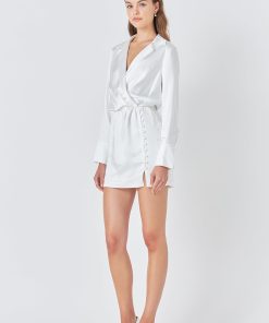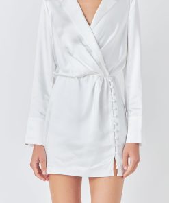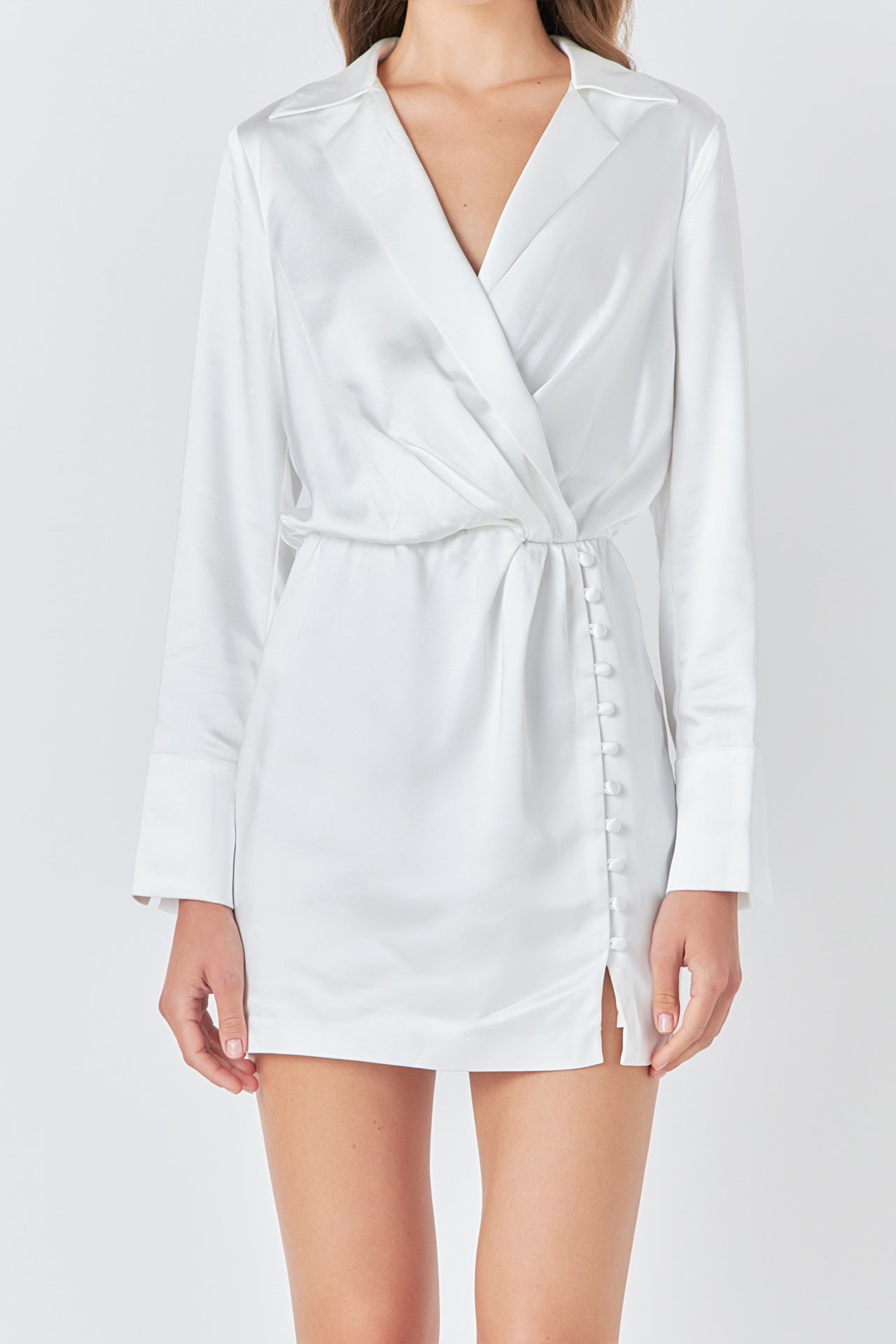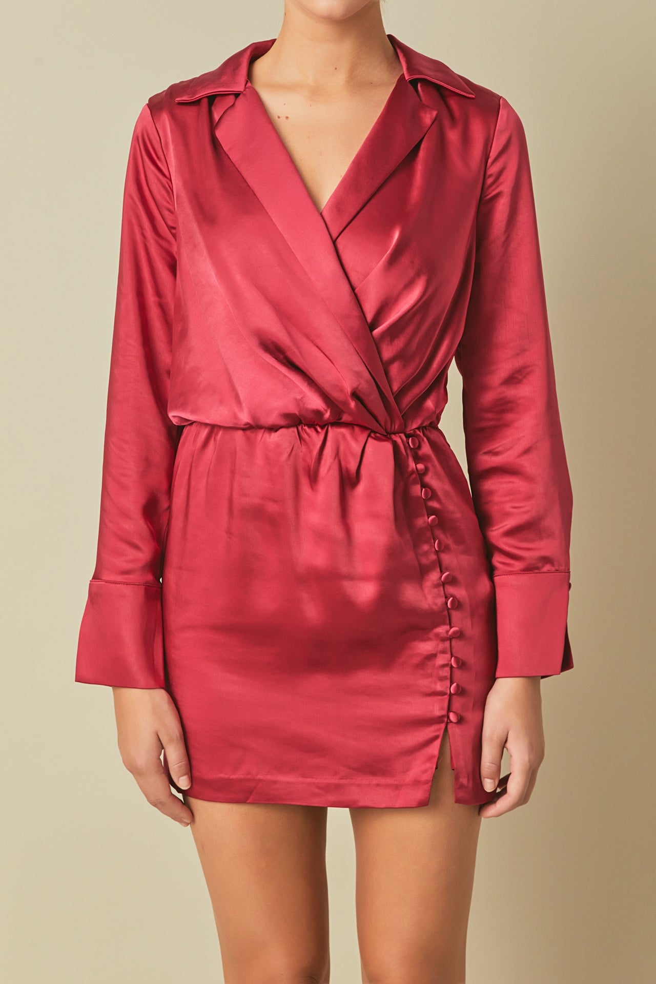 Sexy, sleek, comfortable – this mini dress does it all! Made with a beautiful satin fabric and unique button details, this satin mini dress is the perfect outfit for a date night, party, birthday celebration, and any other special occasion! Plus, the lining and side zipper makes sure the dress is secure and comfortable all night long.