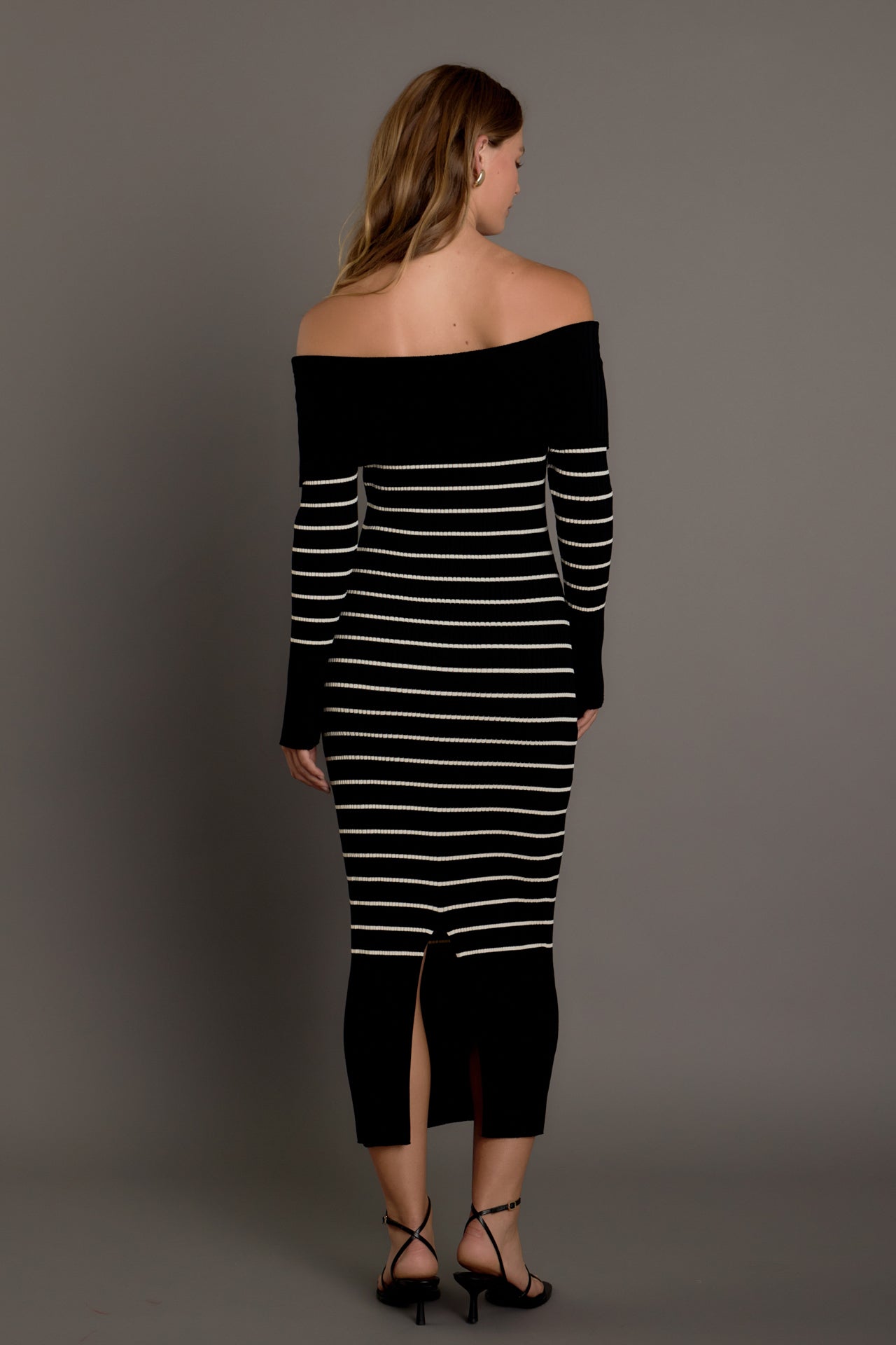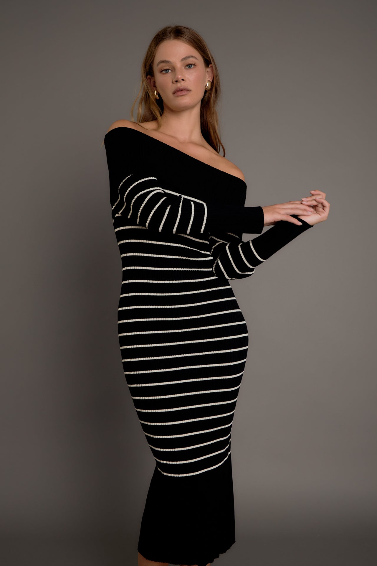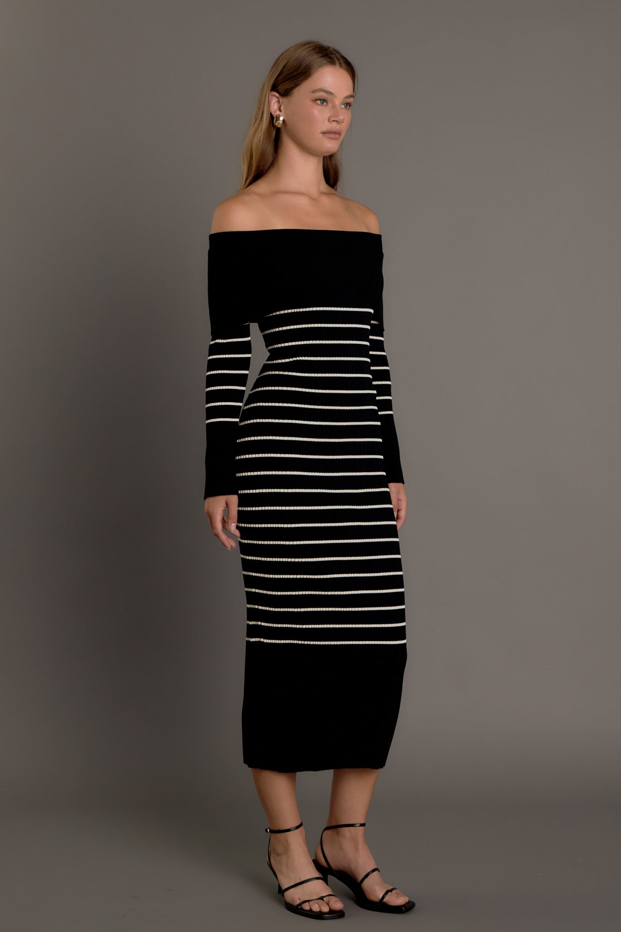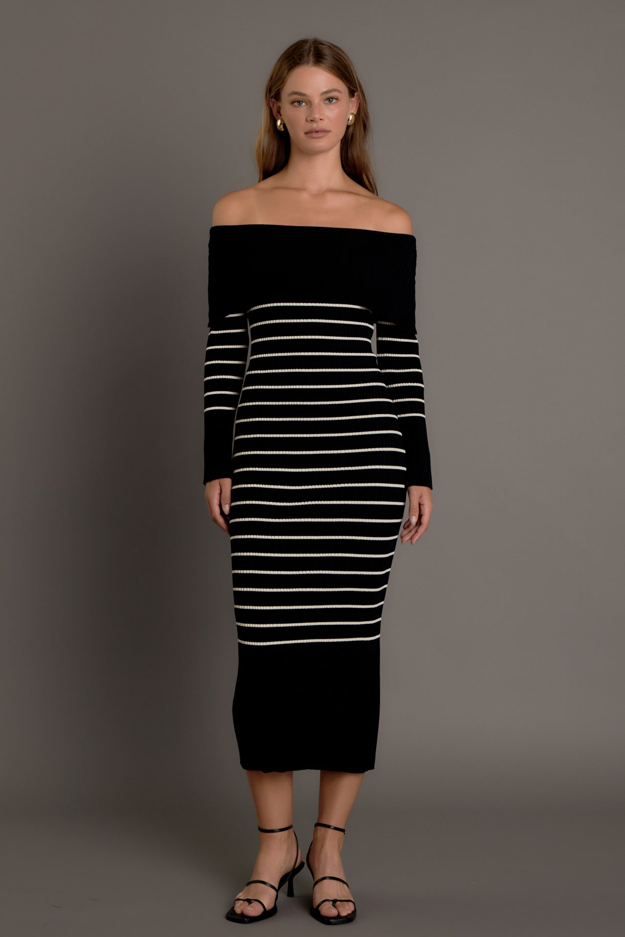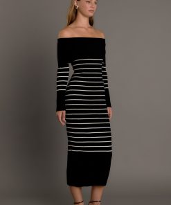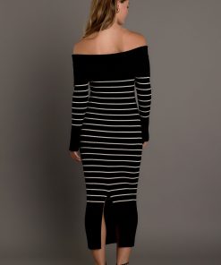 Make a stylish statement with our Off Shoulder Fold Striped Maxi Dress. This must-have dress features a knit and ribbed design, creating a flattering fit that accentuates your curves. The off shoulder neckline adds flair and the striped pattern adds a touch of sophistication. Perfect for any occasion, from a day out to a special event, this dress will have you turning heads. Stand out in comfort and style with our Off Shoulder Fold Striped Maxi Dress. Shop now and embrace your inner fashionista!