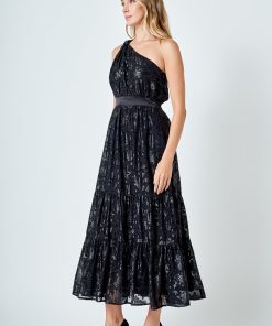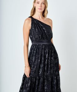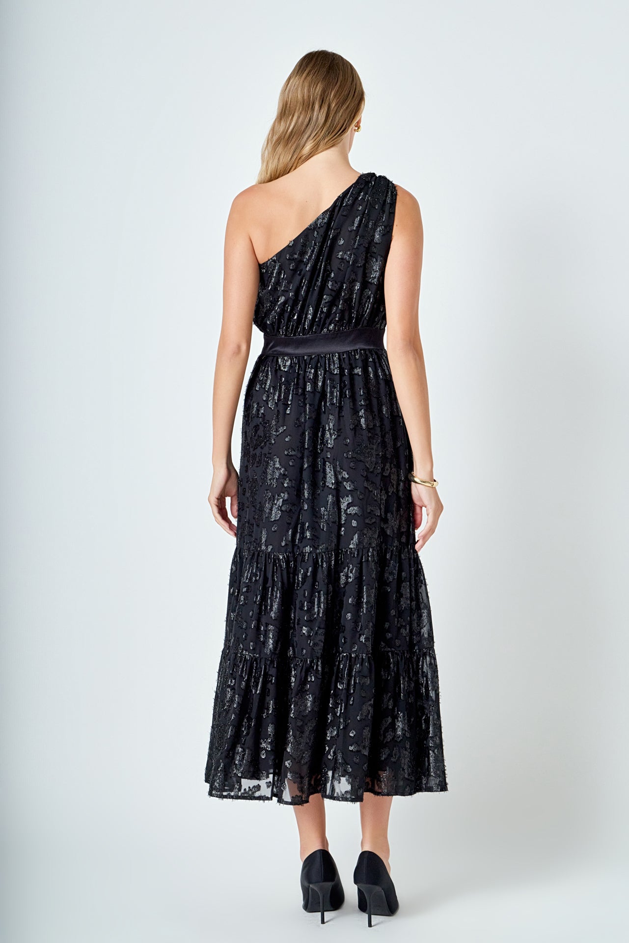Flaunt your feminine side with our One Shoulder Chiffon Maxi Dress. Made with luxurious chiffon and a contrasting satin band and shoulder knot this dress is perfect for any special occasion. The maxi length adds a touch of elegance while the one shoulder design adds a modern twist. Shop now and turn heads with this stunning dress!