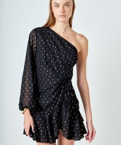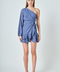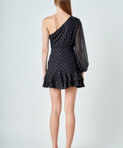 Endless Rose Women’s Dresses One Shoulder Chiffon Mini Dress | Black|dusty Blue|dusty Lavender|olive