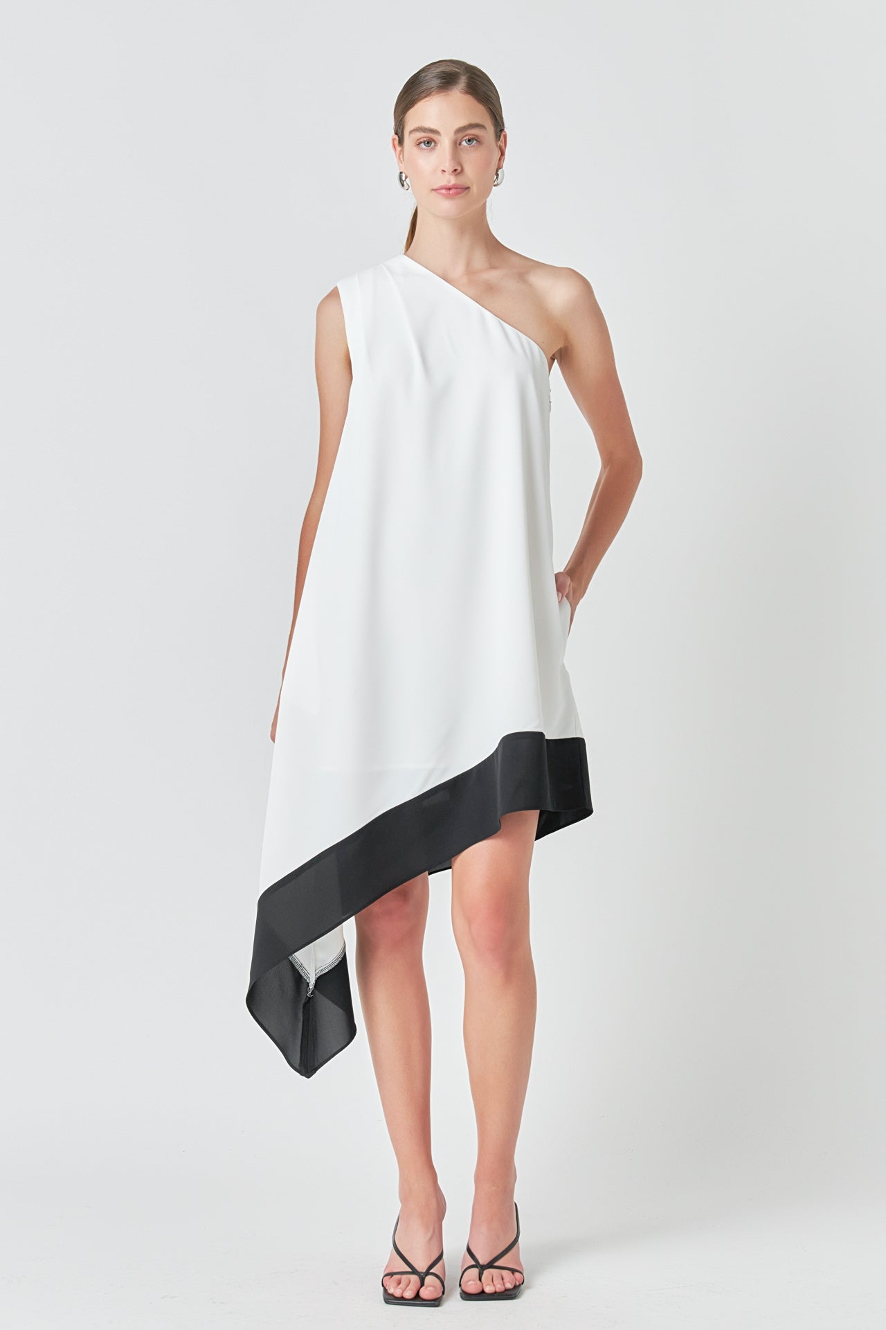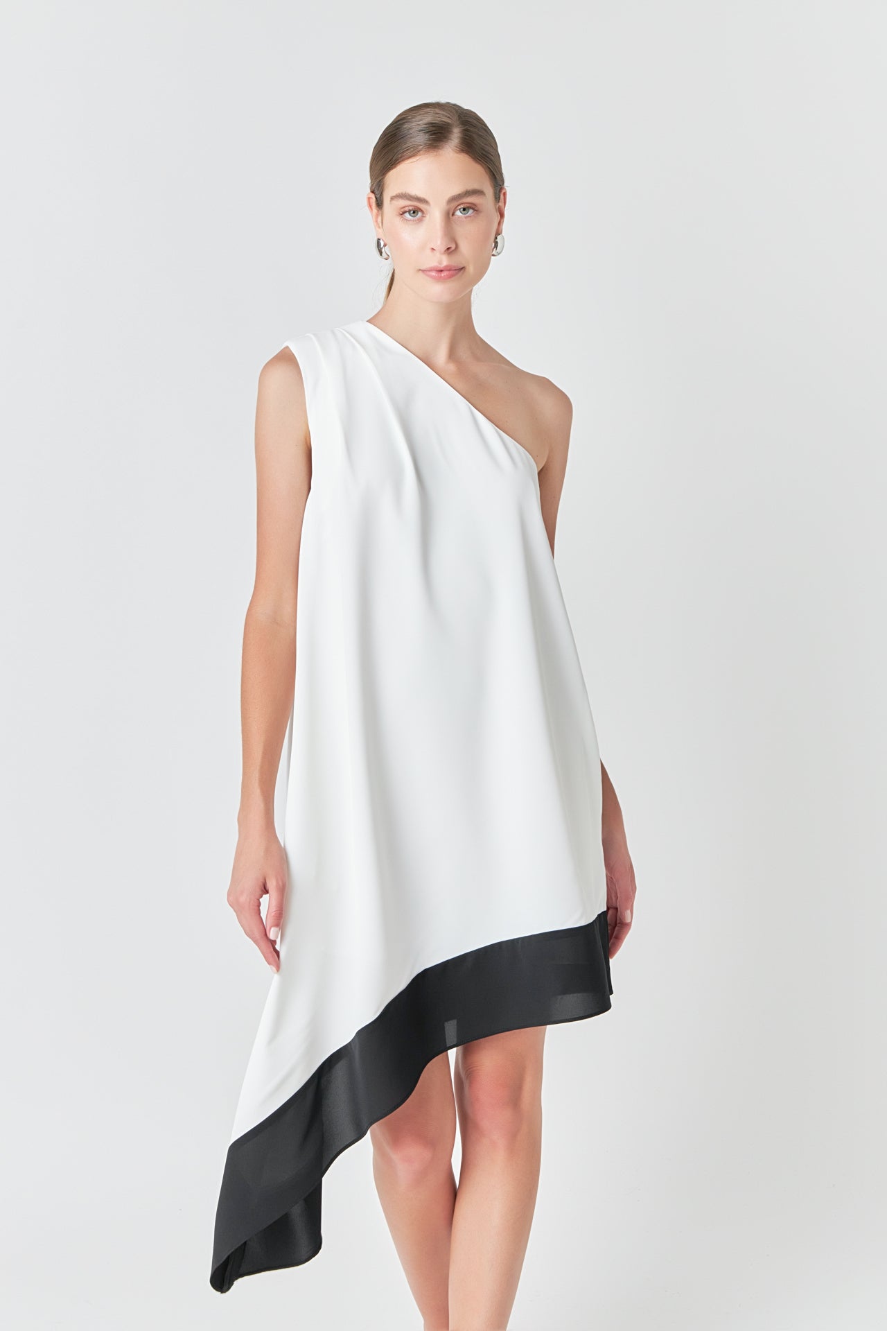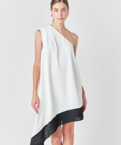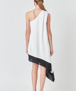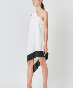 Endless Rose Women’s Dresses One Shoulder Colorblock Dress | Cream & Black
