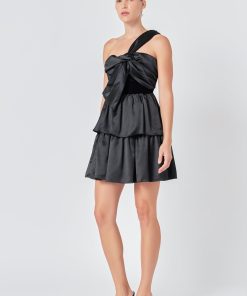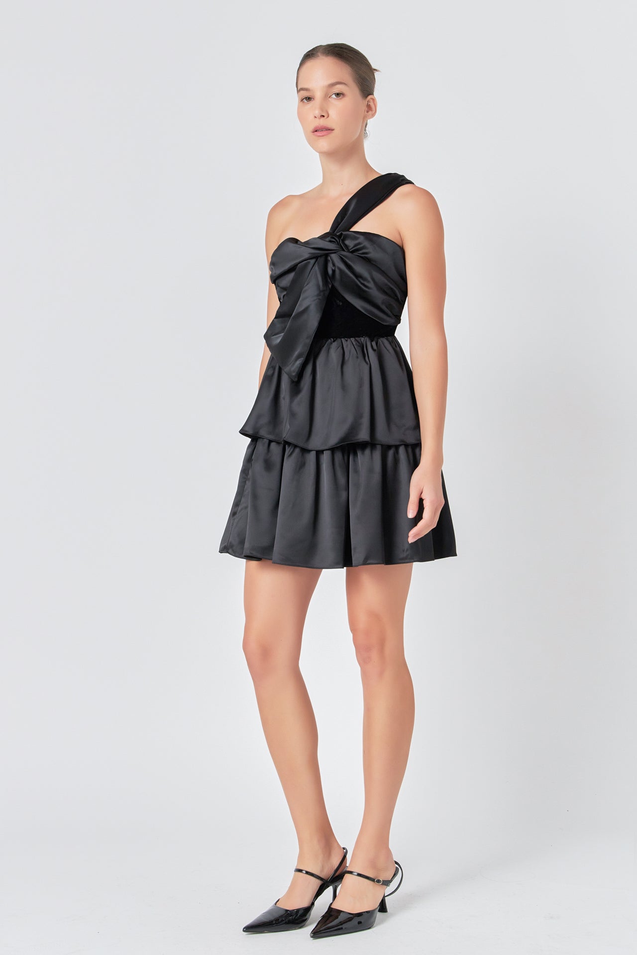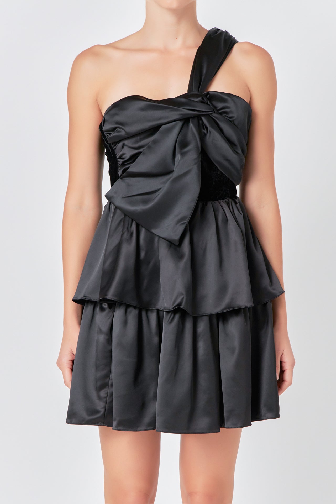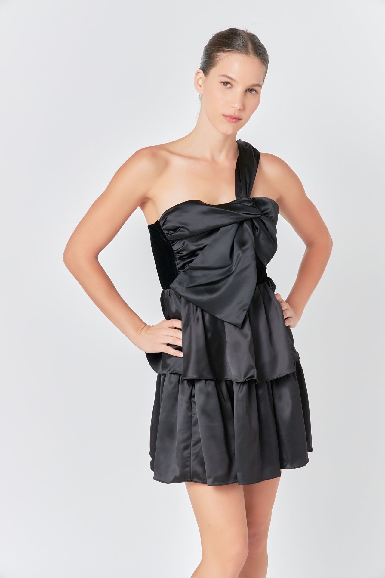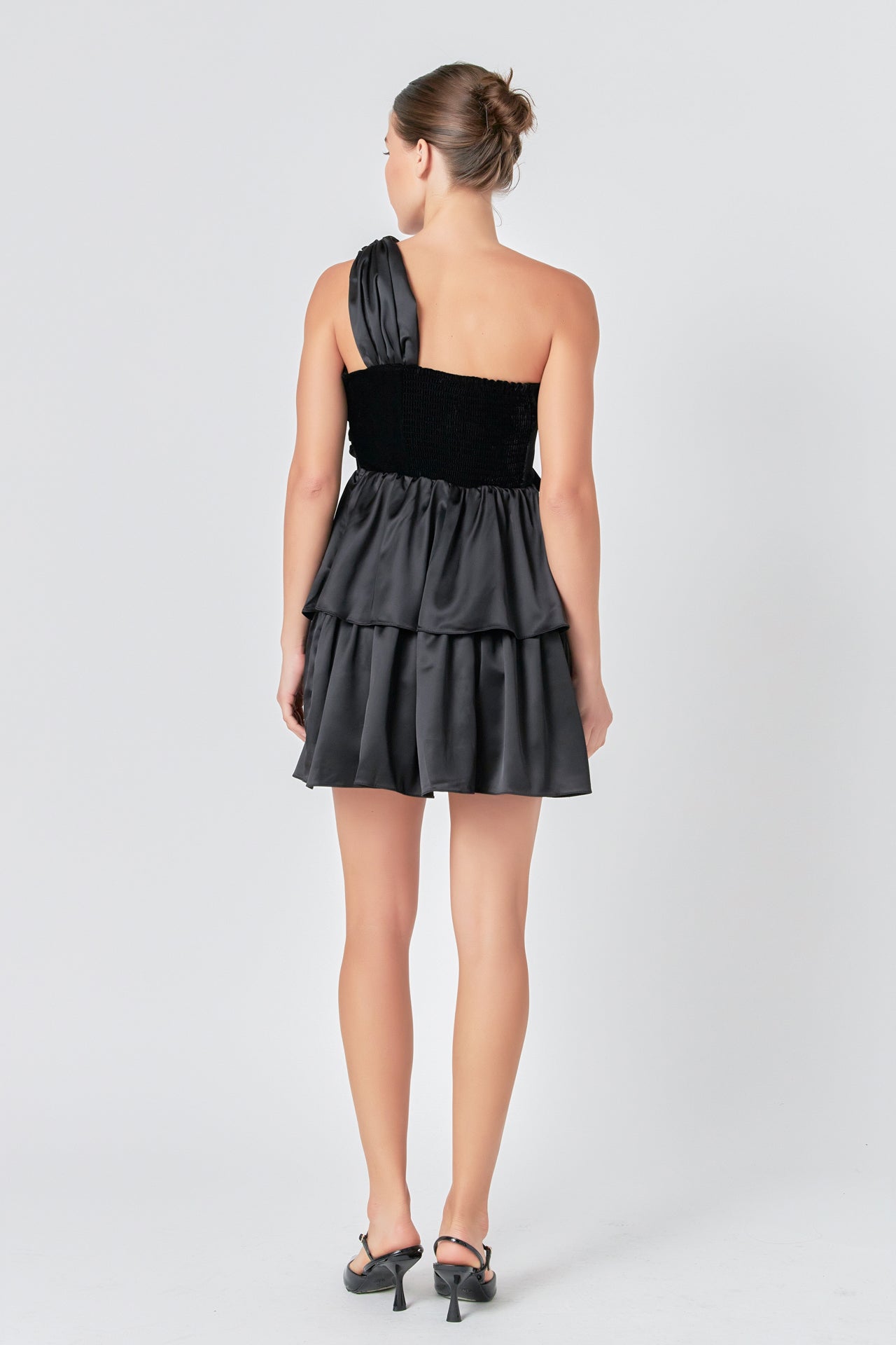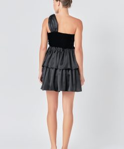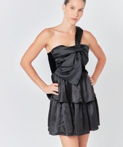 Endless Rose Women’s Dresses One-shoulder Satin Mini Dress | Black