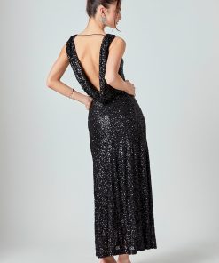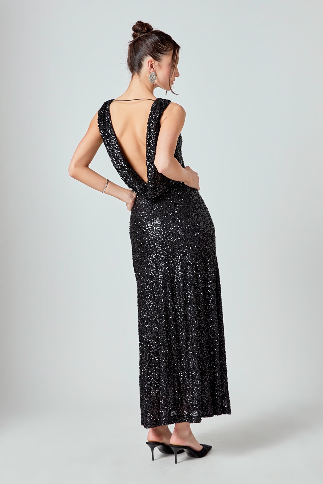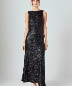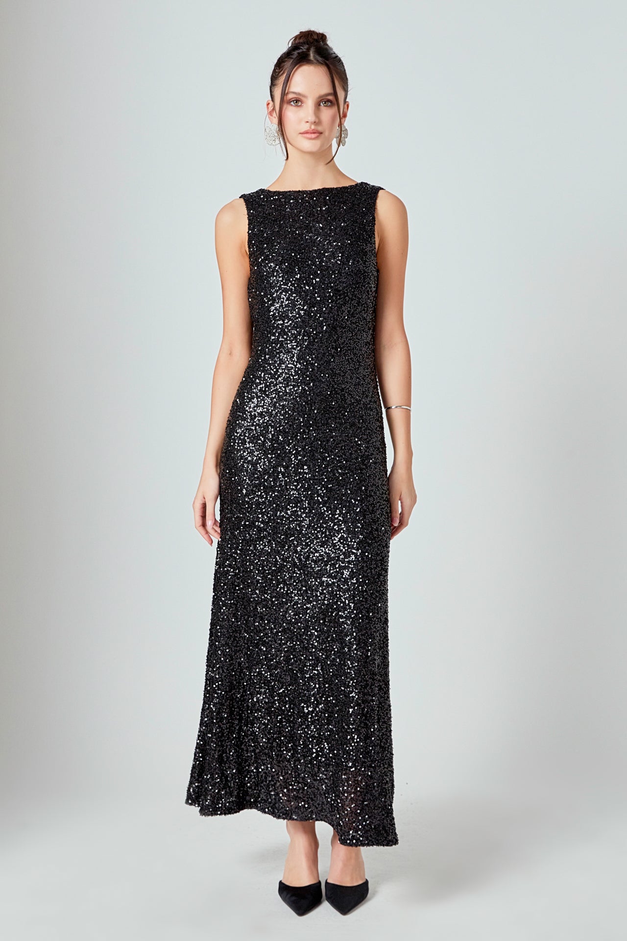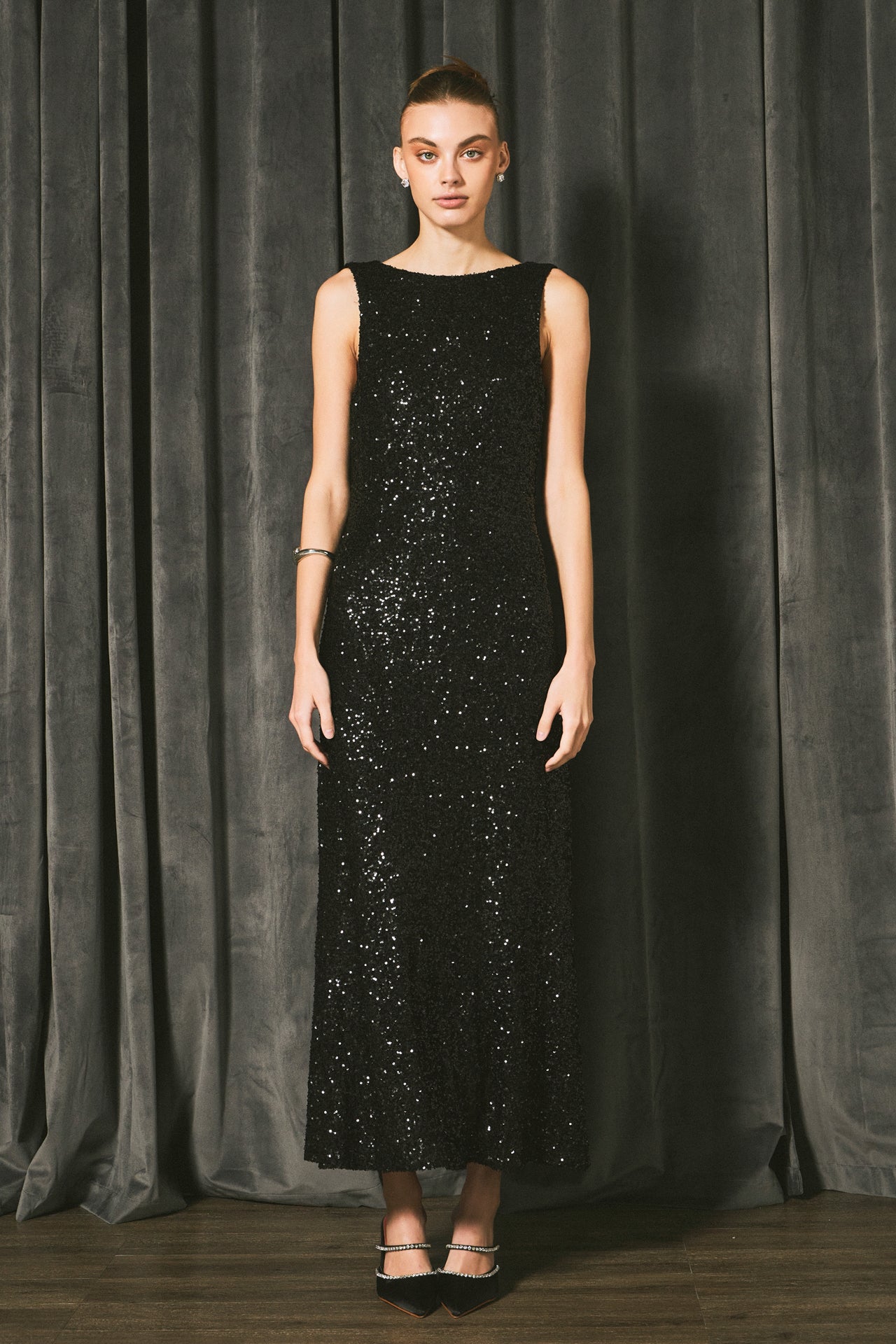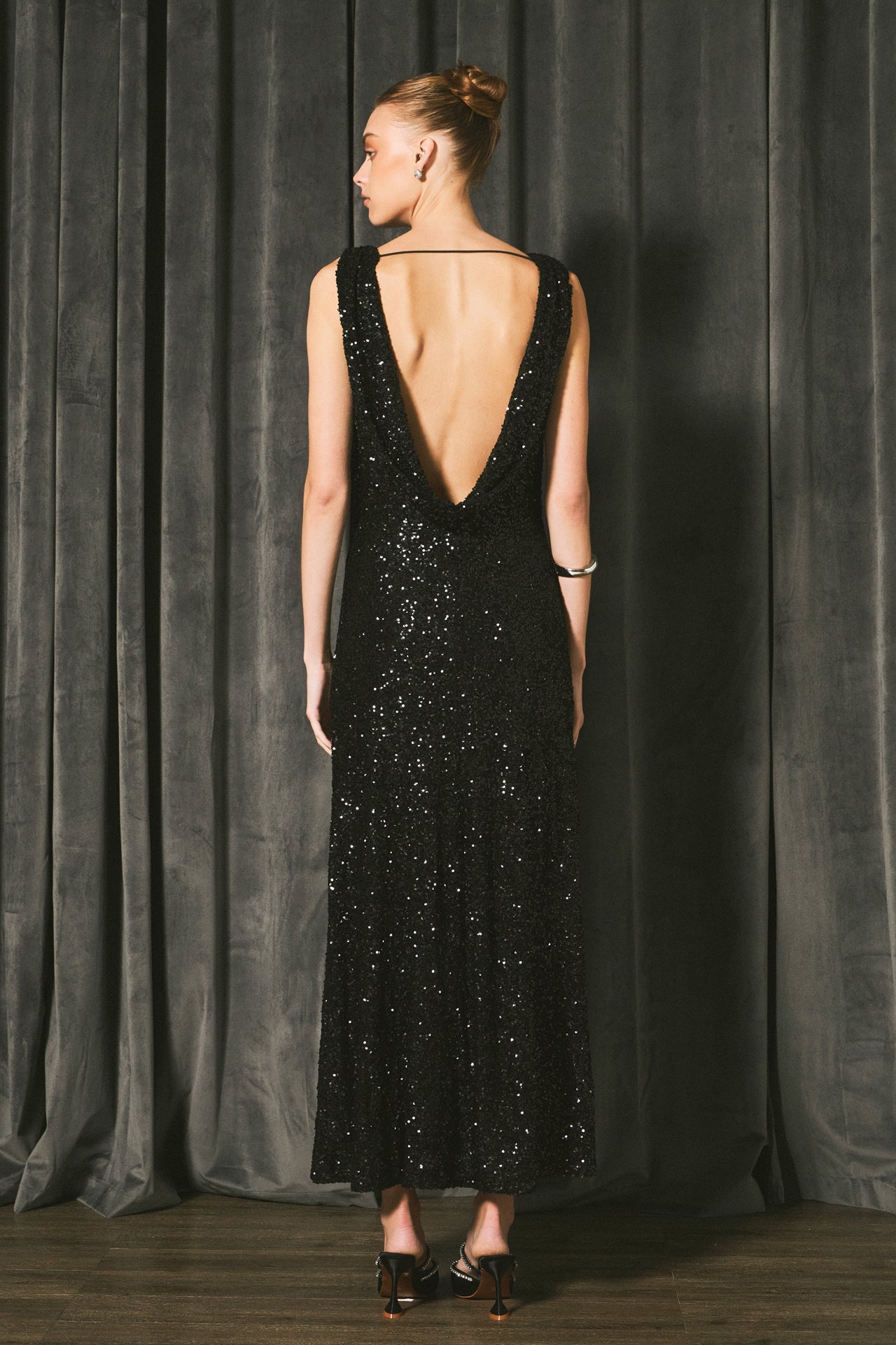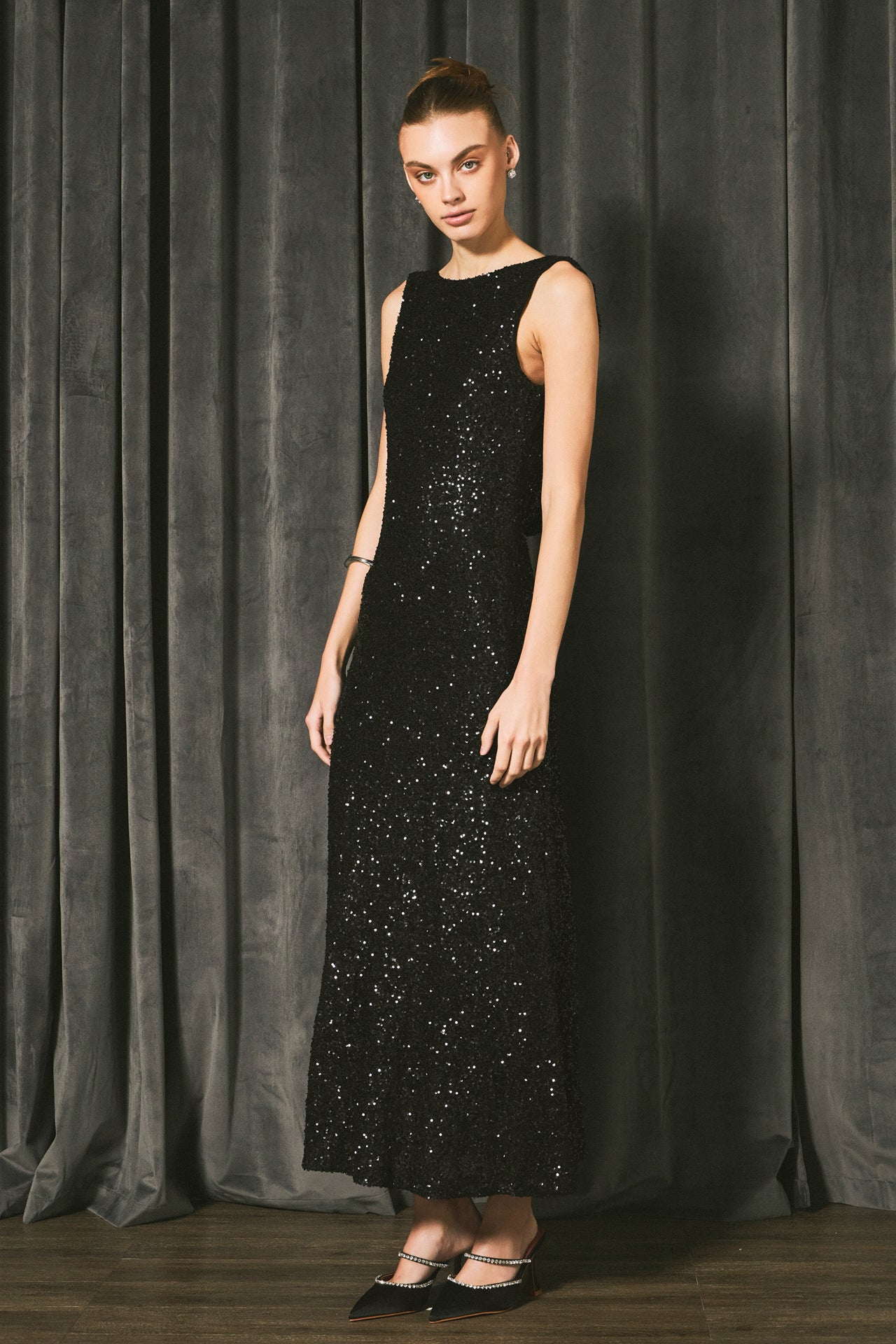 Endless Rose Women’s Dresses Open Back Sleeveless Sequins Maxi Dress | Black