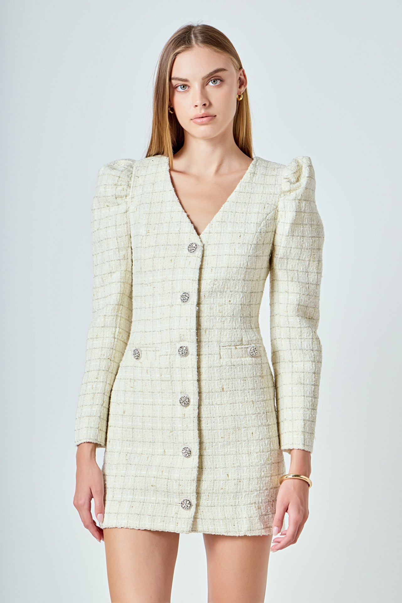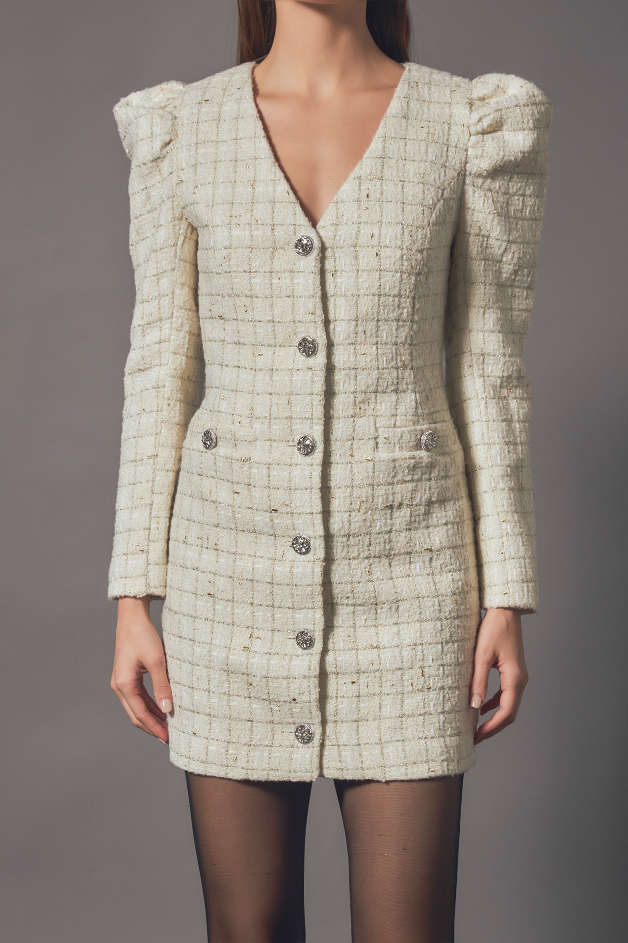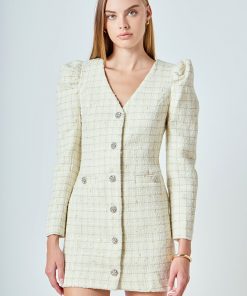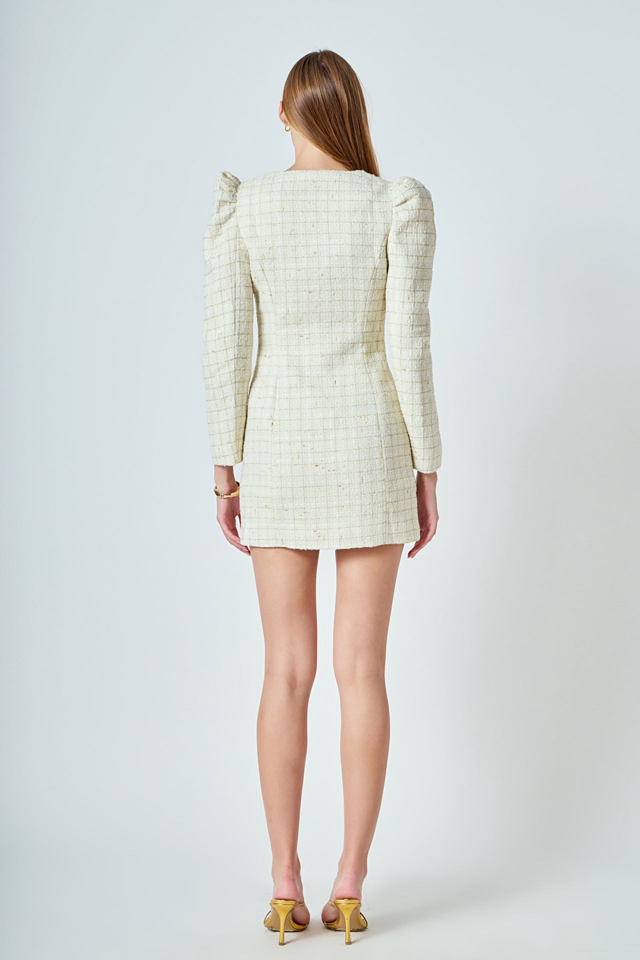Endless Rose Women’s Dresses Premium Long-sleeve Tweed Mini Dress | Ivory